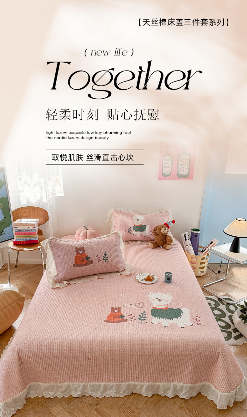 (总)茉夕家纺 2025新款天丝棉大版定位床盖,灵薇女孩,萌萌羊,小熊假日,雅美兔,约定