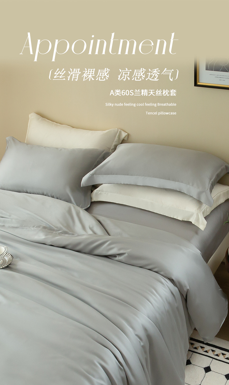 商品名称:ONE TWO ONE 121 2025新款60支奥地利进口兰精天丝秋风系列单品-枕套 布鲁灰
