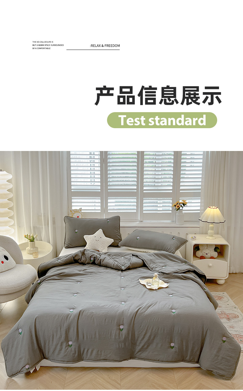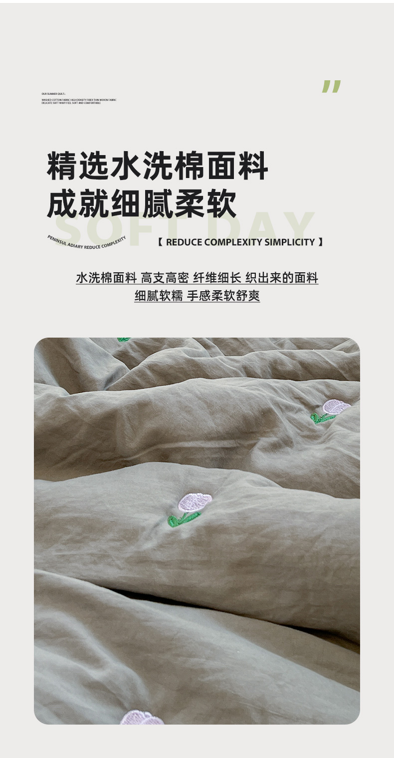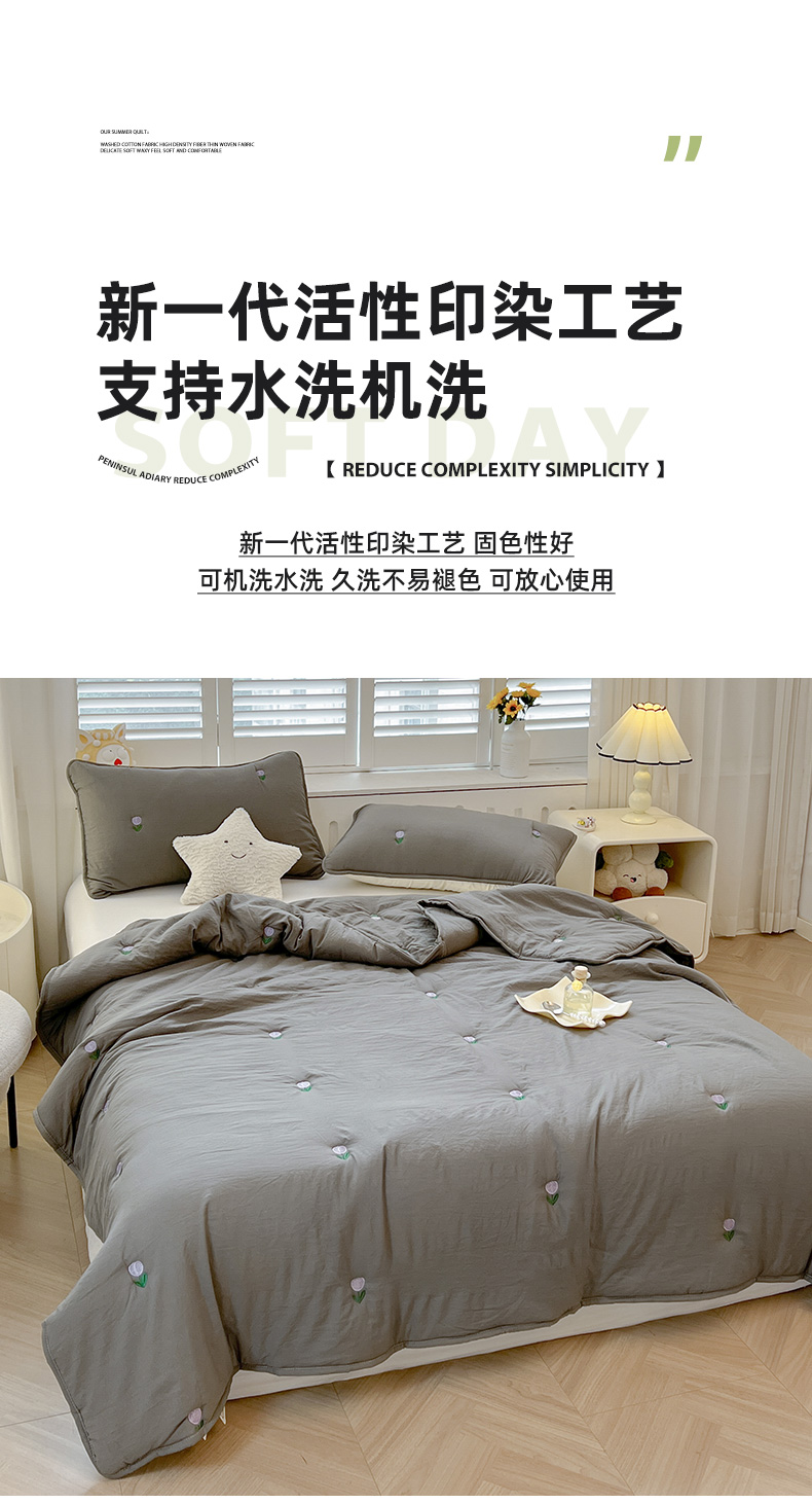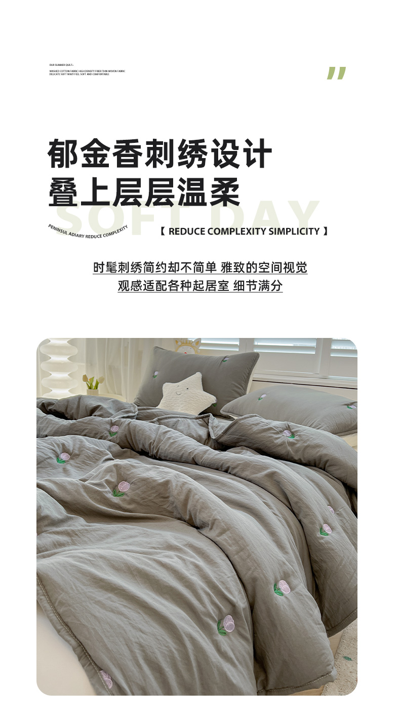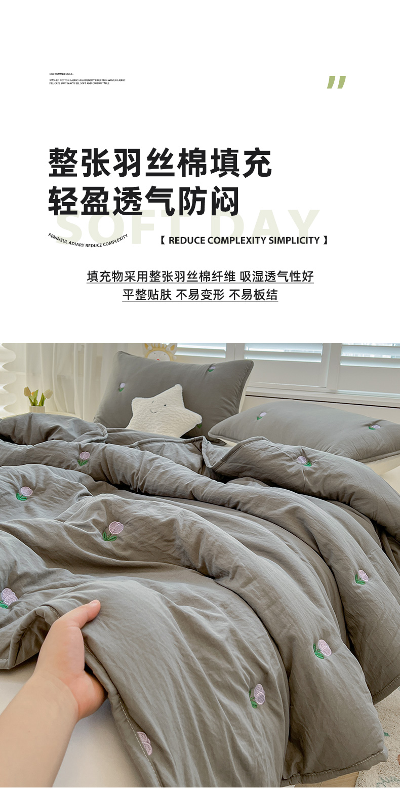 商品名称:推推家纺 2025新款水洗棉玫瑰刺绣夏被 郁金香-灰色