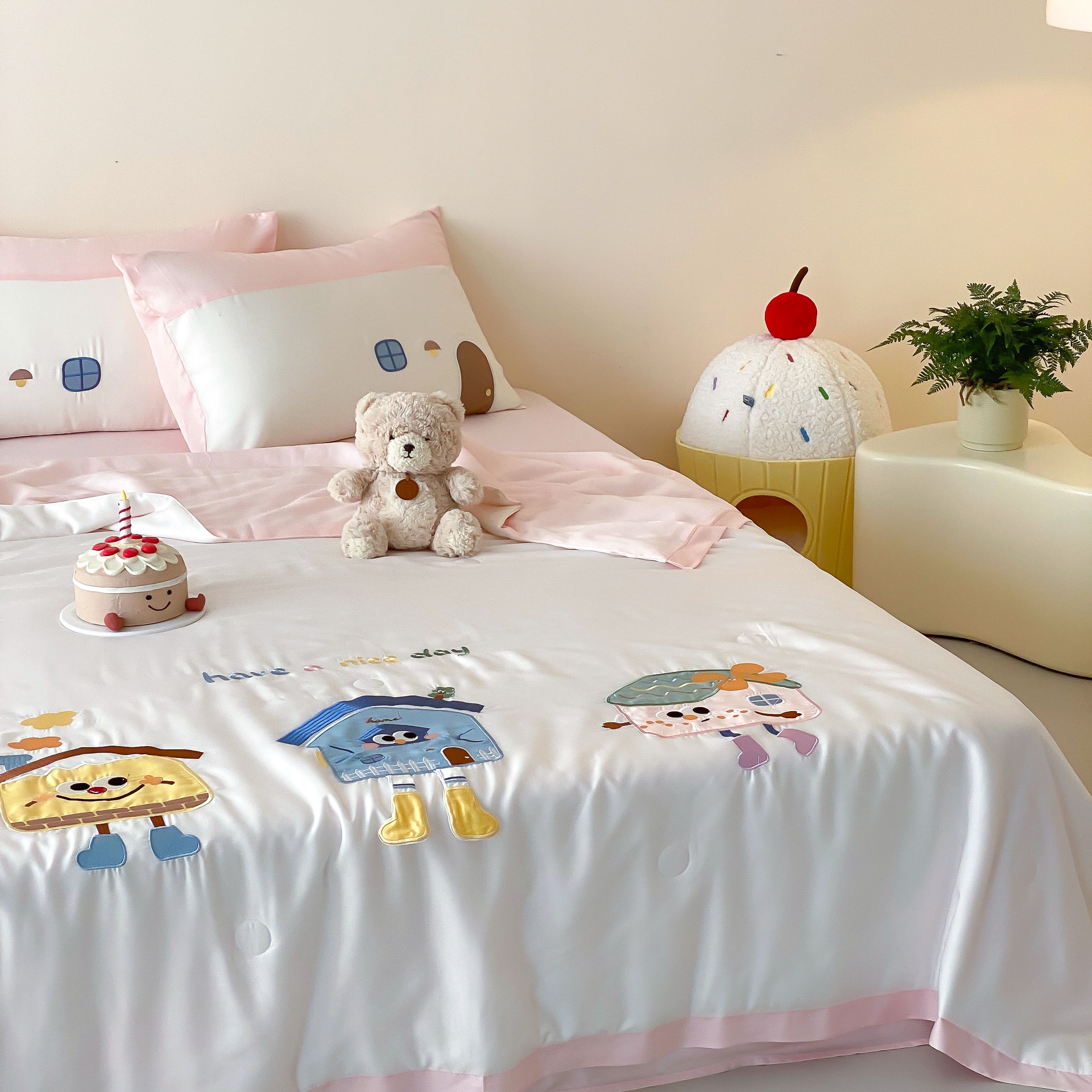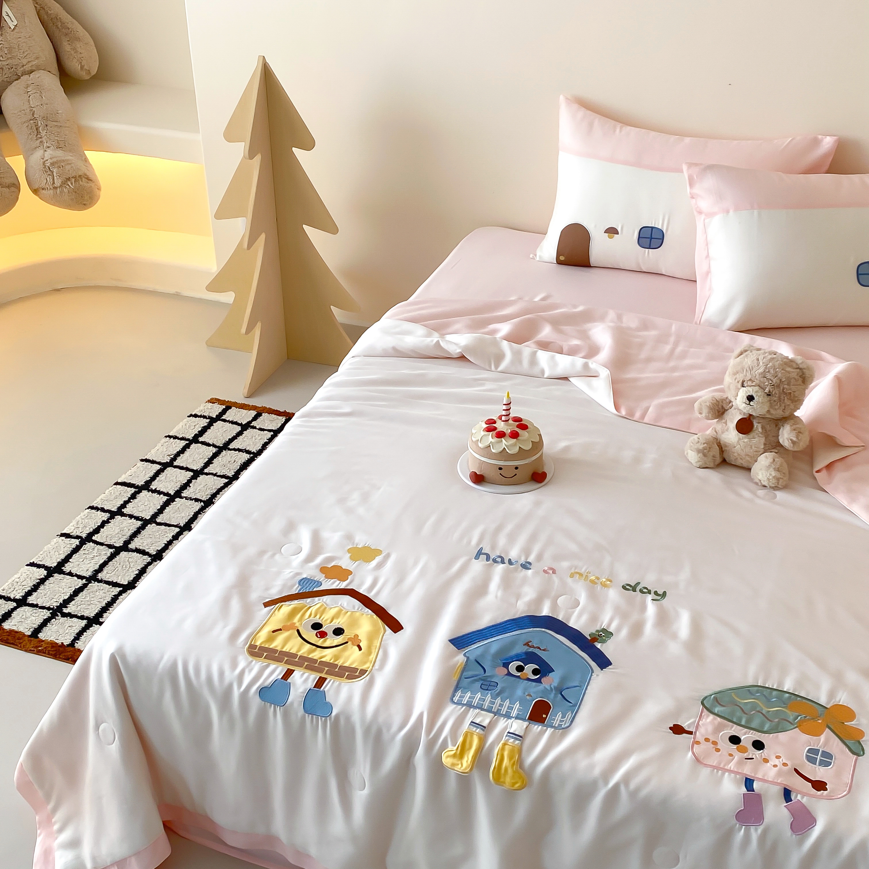星野 2025新款50s天丝刺绣夏被夏凉被空调被-格格屋 格格屋-蓝