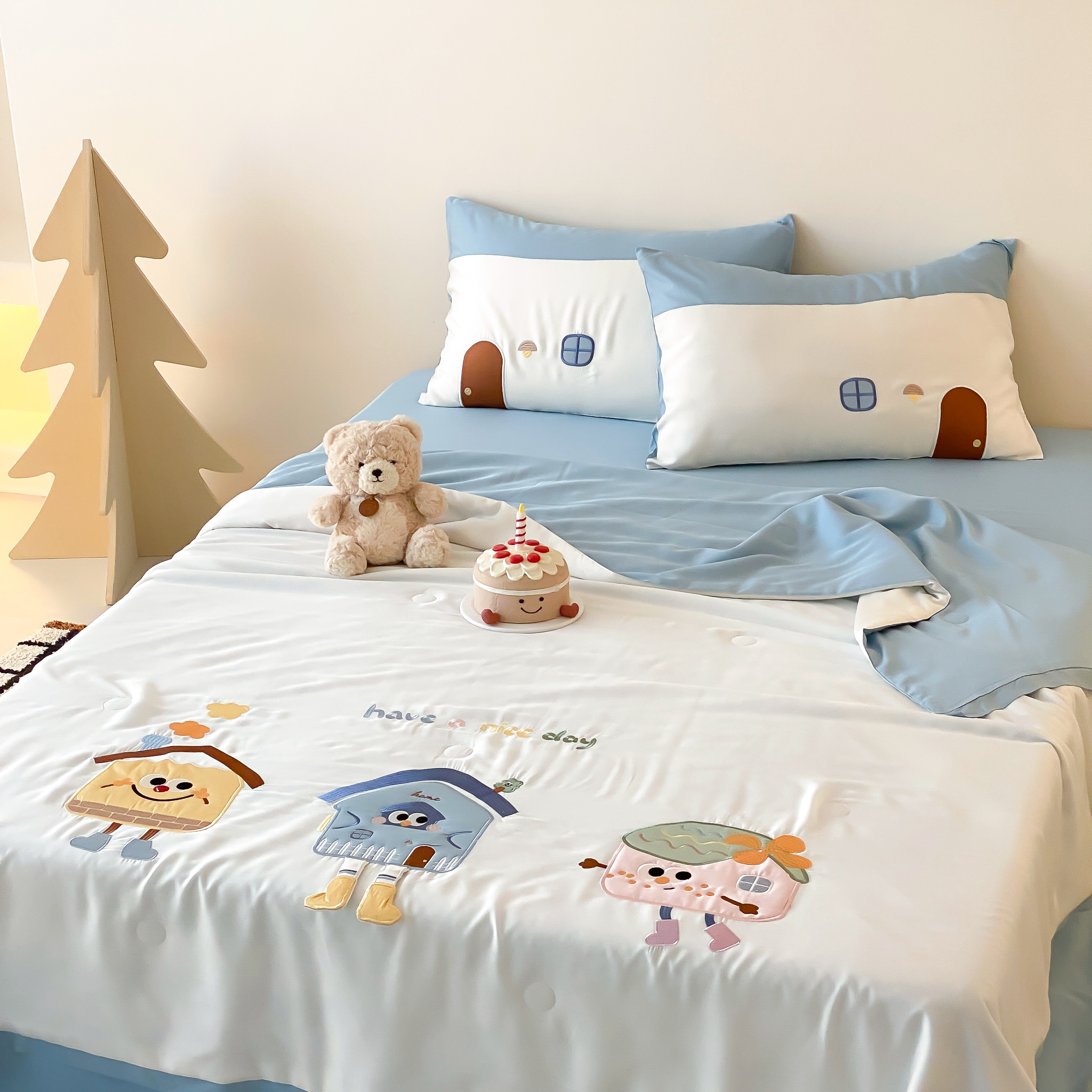 商品名称:星野 2025新款50s天丝刺绣夏被夏凉被空调被-格格屋 格格屋-蓝