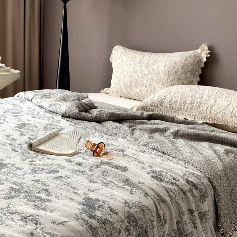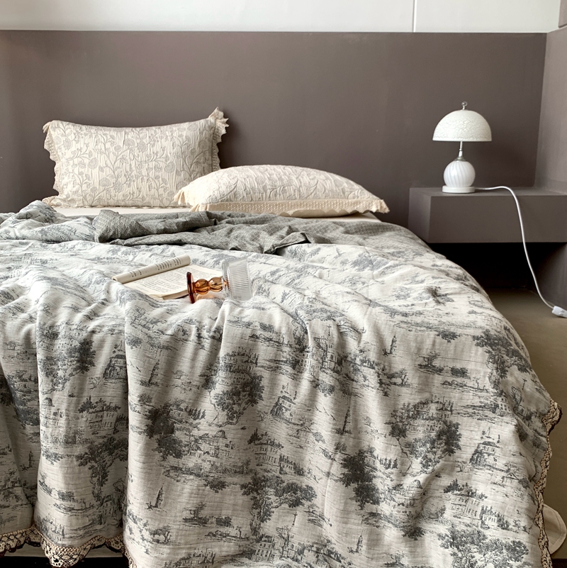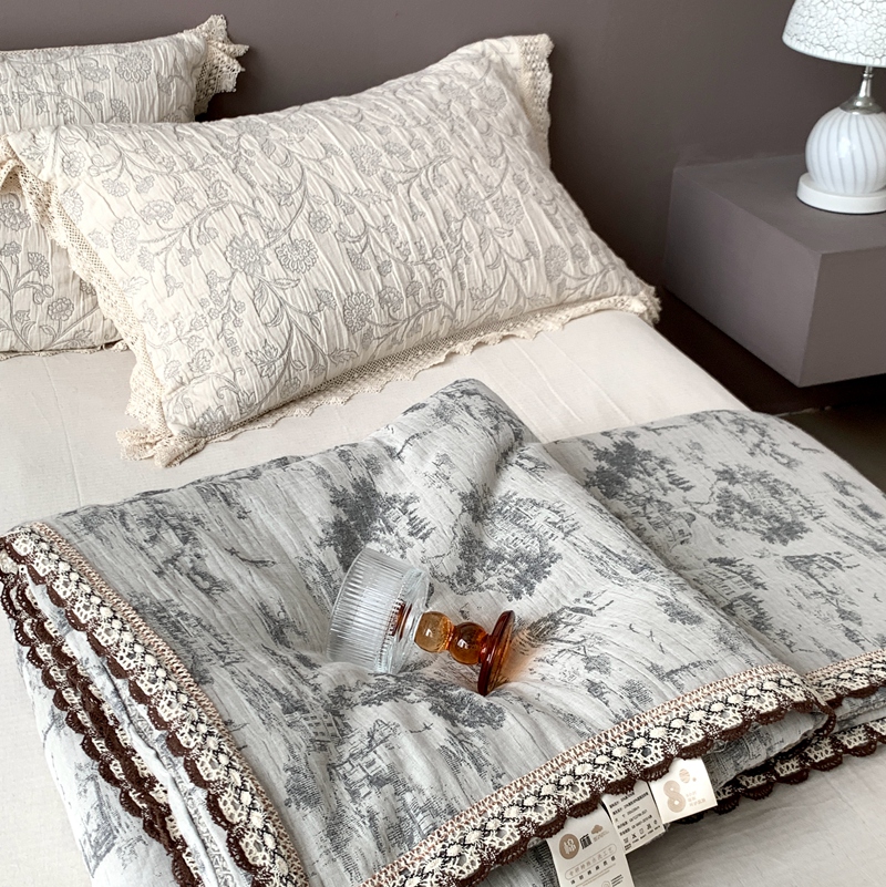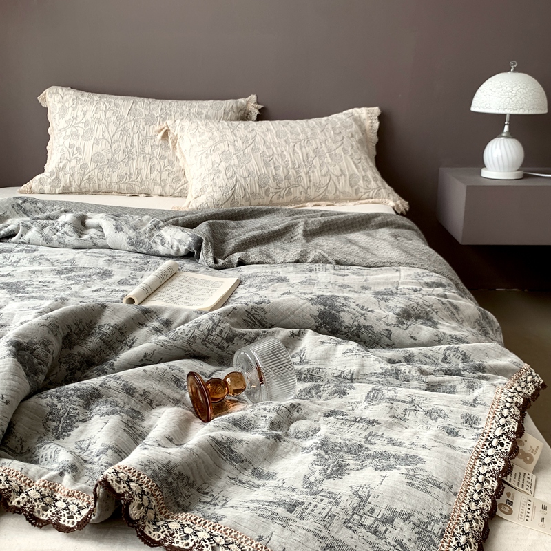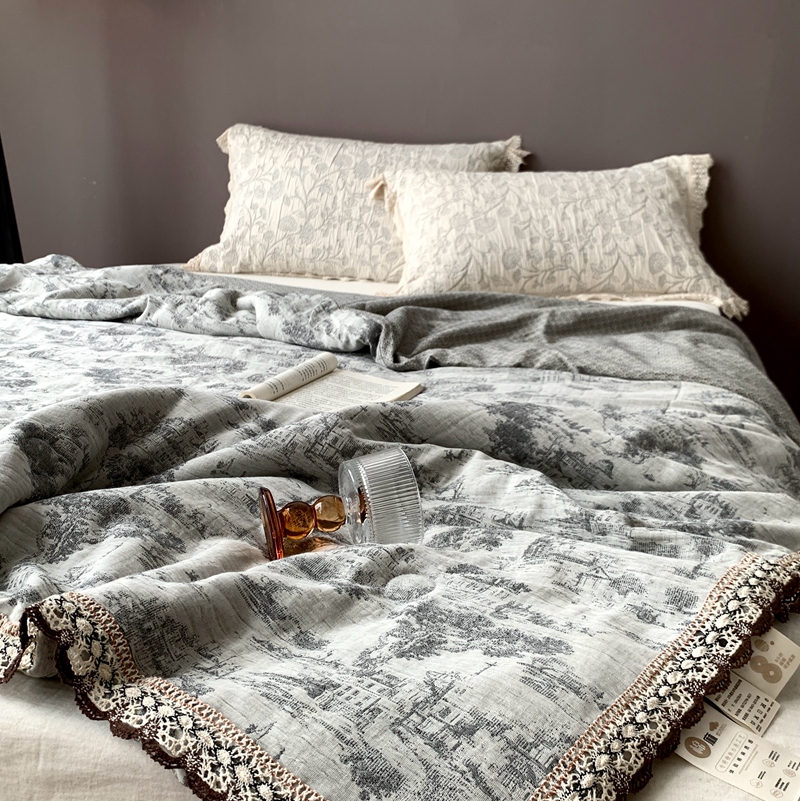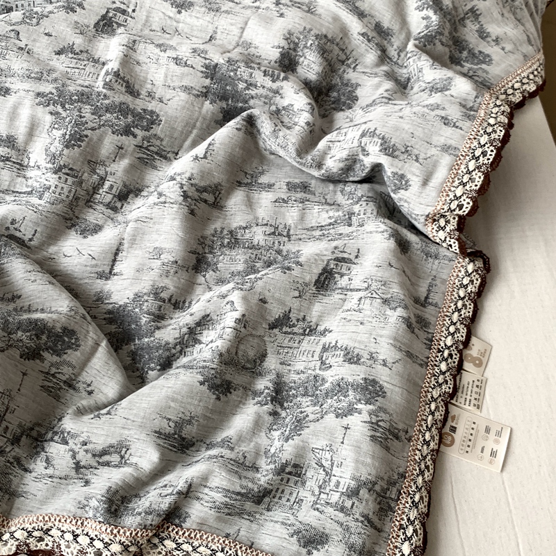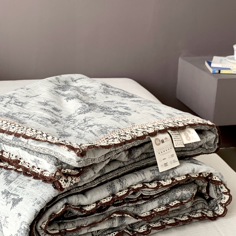 凡客2025新款棉麻色织提花双层纱蚕丝棉夏被(镂空花边款) 忆江南-深色