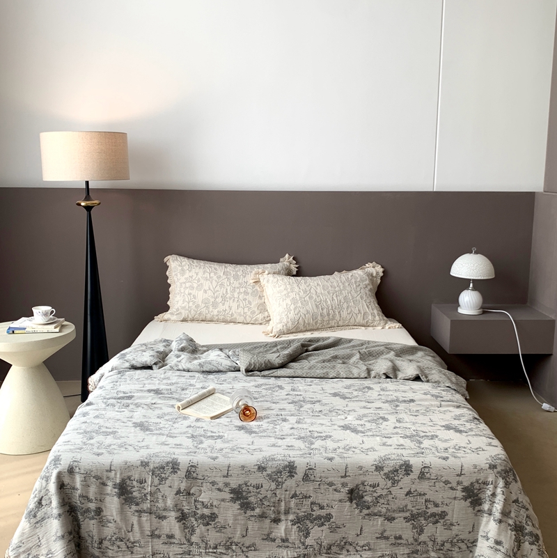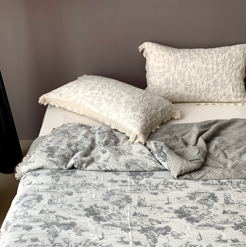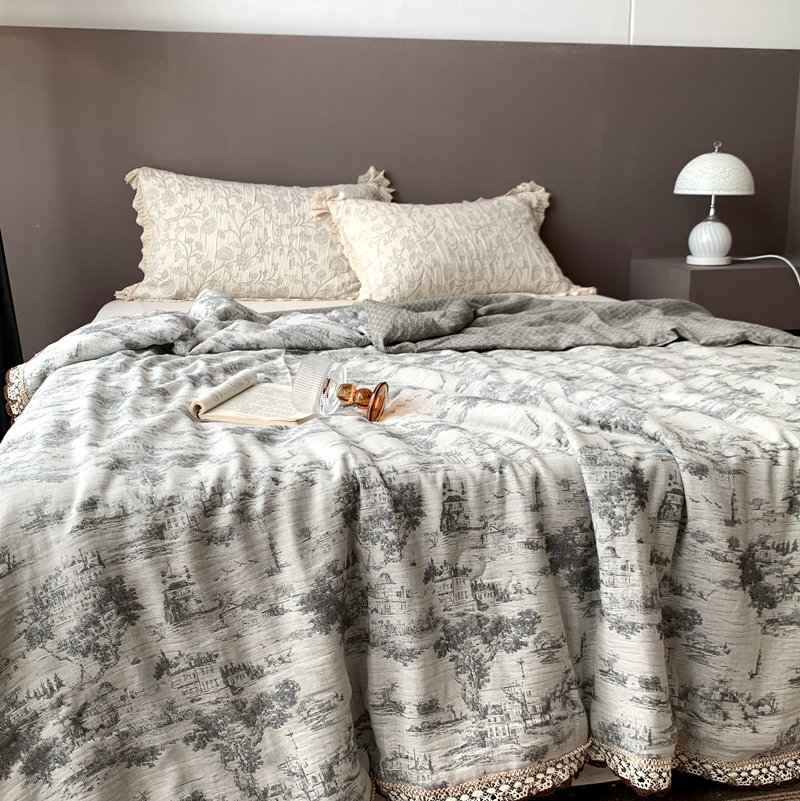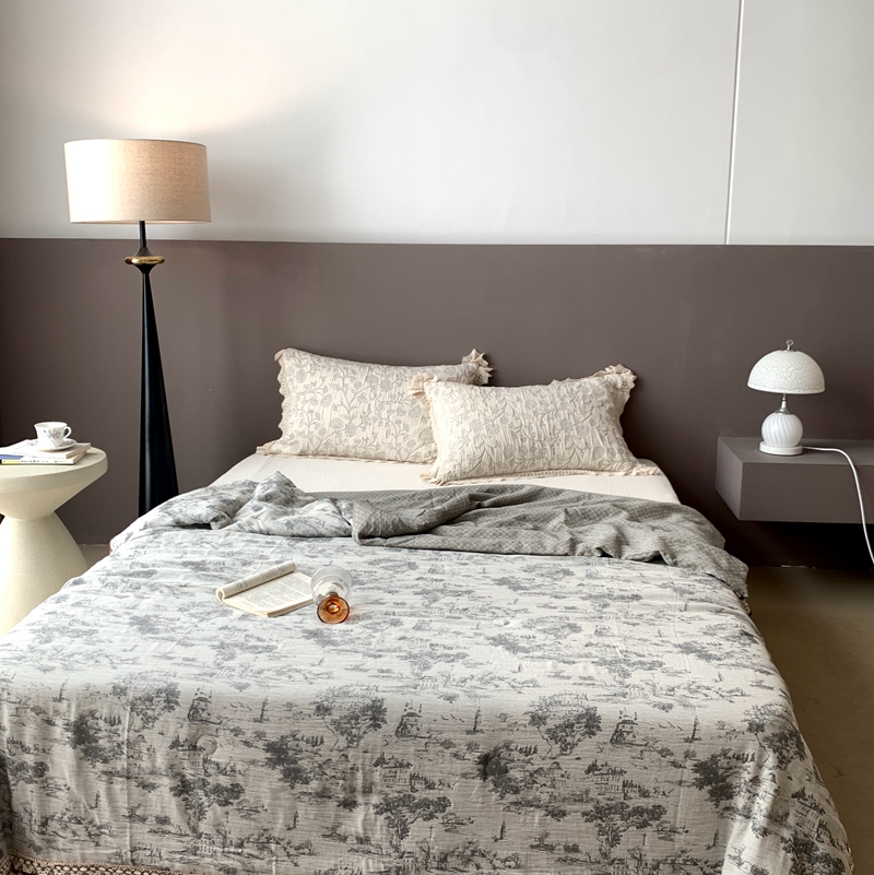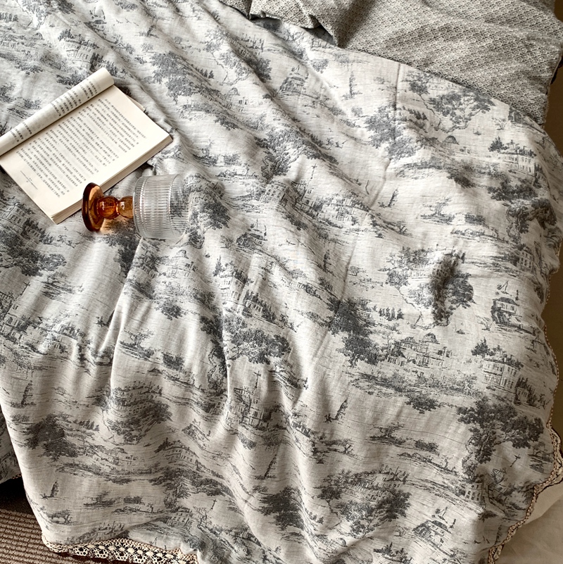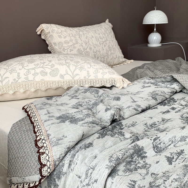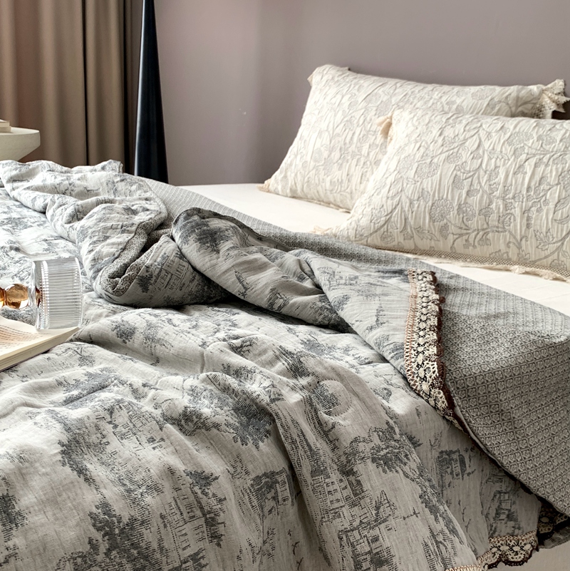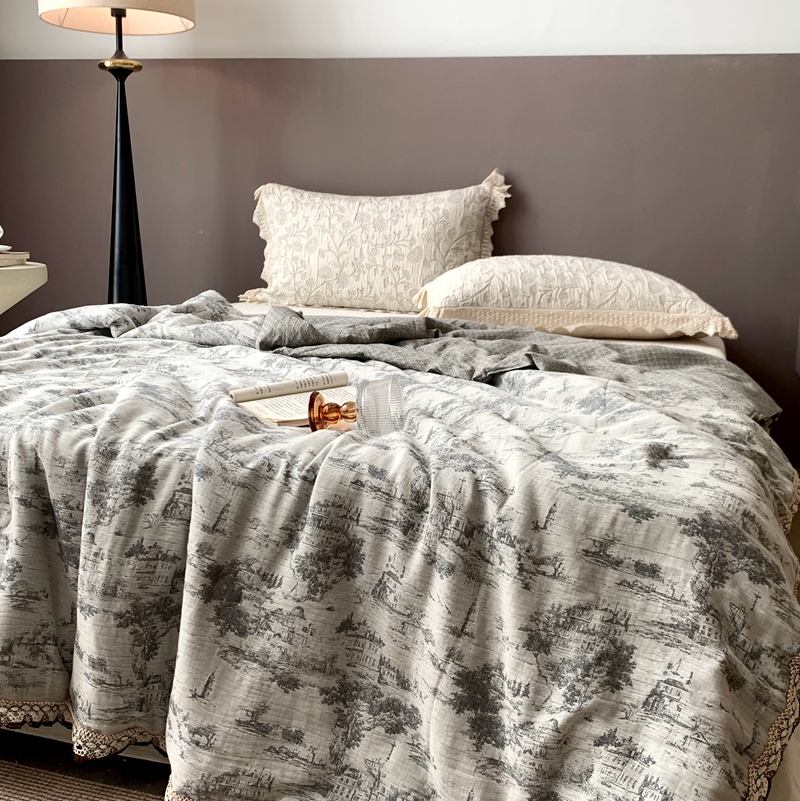 凡客2025新款棉麻色织提花双层纱蚕丝棉夏被(镂空花边款) 忆江南-深色