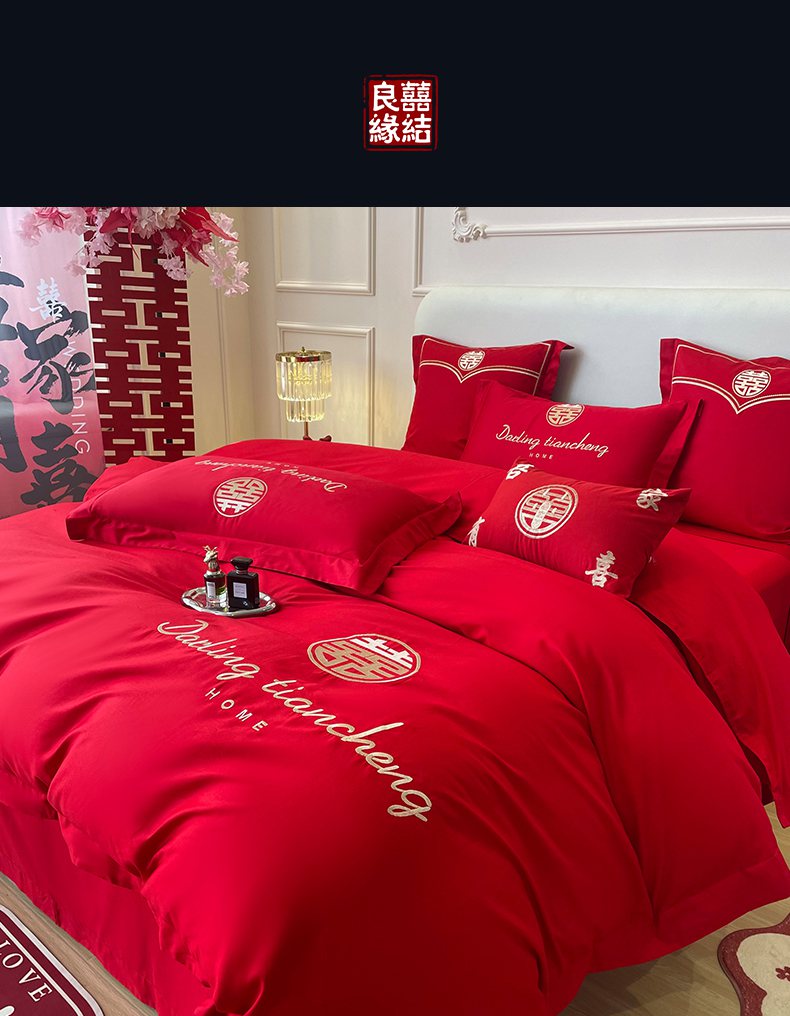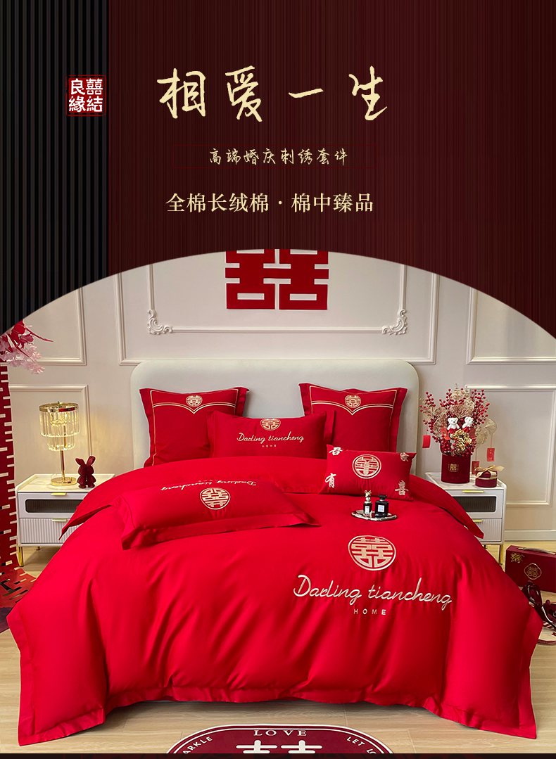 当前位置: 91家纺网 > 商品网购 > 床品套件 > 四件套 > 婚庆四件套 > 洽想家 2025新款全棉新中式刺绣婚庆四件套多件套(控价销售最低不低于288元) 相爱一生