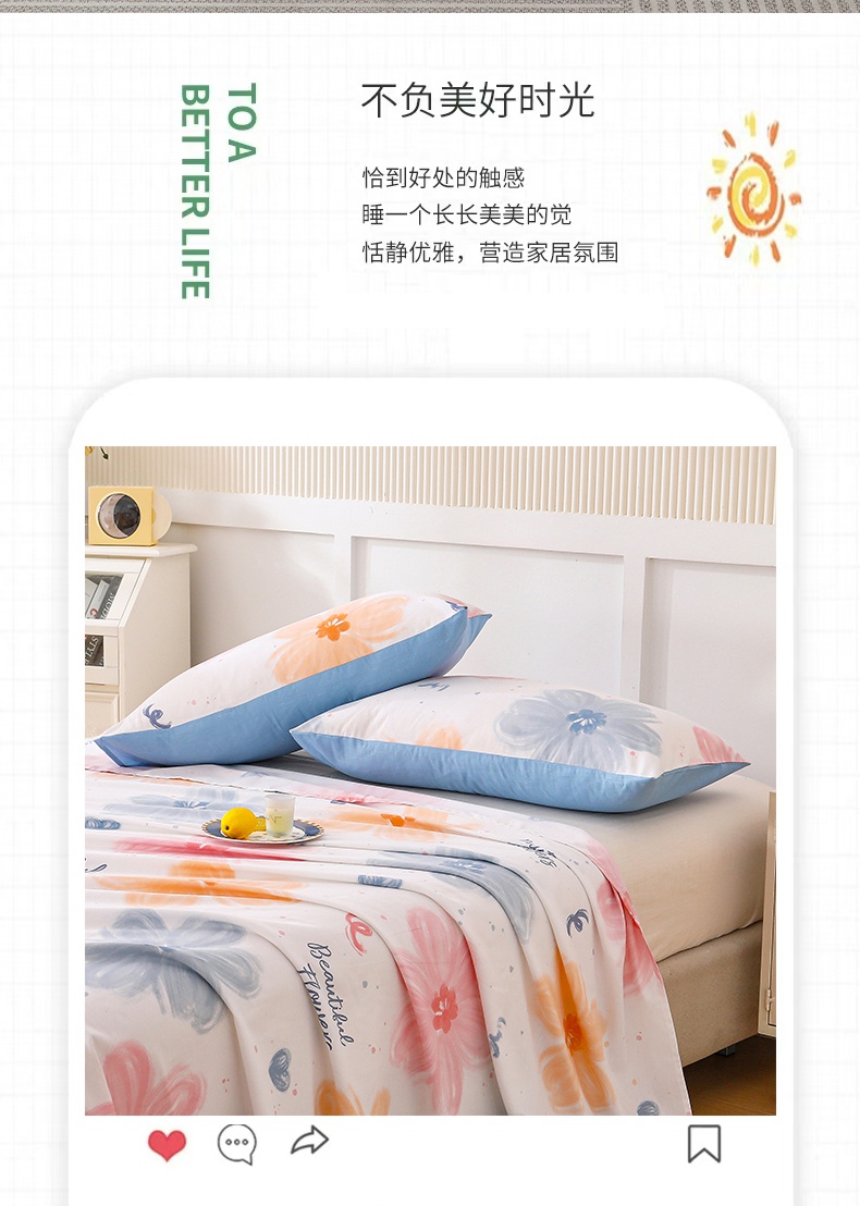 商品名称:宇彬家纺 2025直播新款13070全棉纯棉印花双人单床单枕套三件套喷气小清新简约学生被单 伯爵