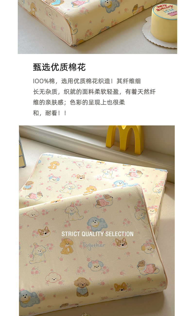 商品名称:百寐 2025新款13372全棉立体滚边立体记忆枕套30×50/40×60碎花卡通枕套 布朗熊