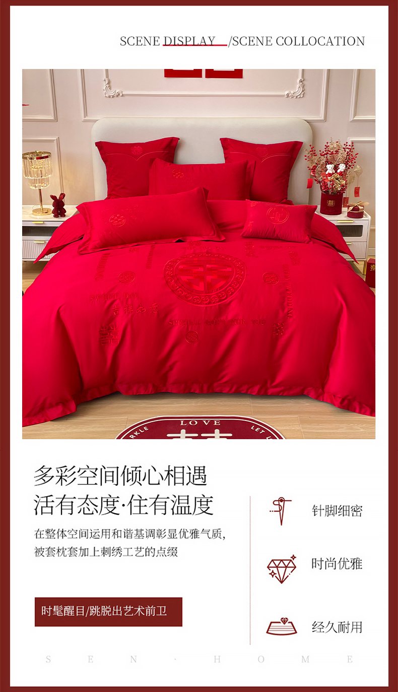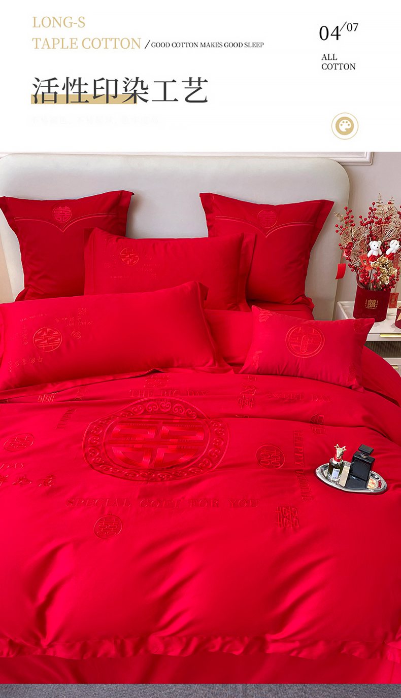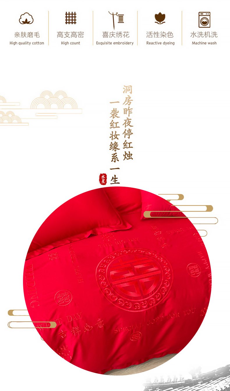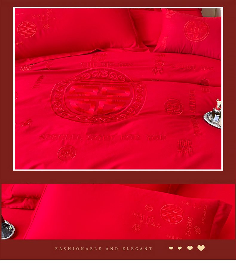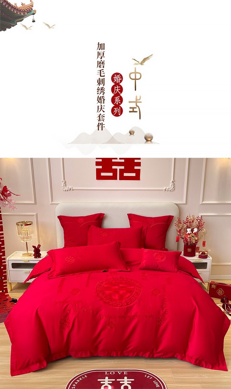 当前位置: 91家纺网 > 商品网购 > 床品套件 > 四件套 > 婚庆四件套 > 洽想家 2025新款亲肤棉磨毛刺绣婚庆四件套多件套 良辰喜事(本色线)磨毛款