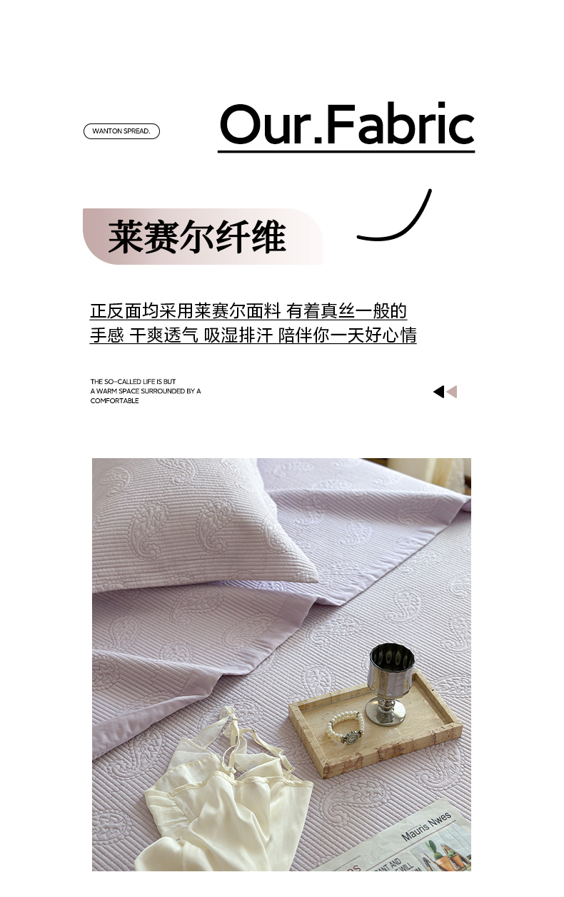 当前位置: 91家纺网 > 商品网购 > 床品套件 > 三件套 > 琳可家居 2025春夏新款腰果花系列双面莱赛尔天丝床盖三件套高温水洗可机洗 腰果花-清新紫