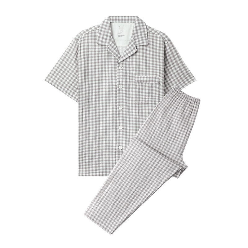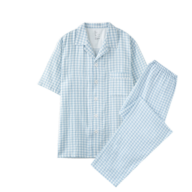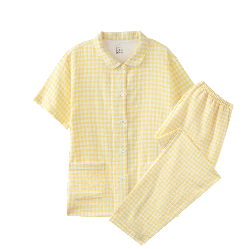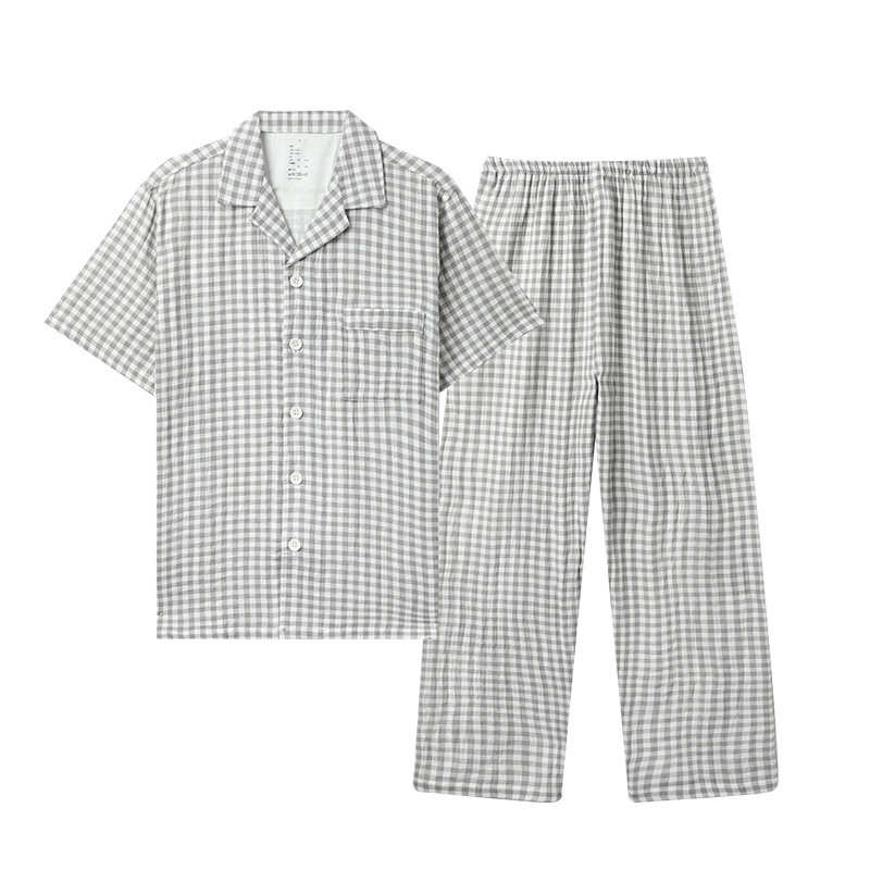 良品汇馆 2025新款日式无印水洗全棉纯棉双层纱睡衣良品女纯棉短袖长裤棉夏季情侣家居服 女款糖果粉短袖
