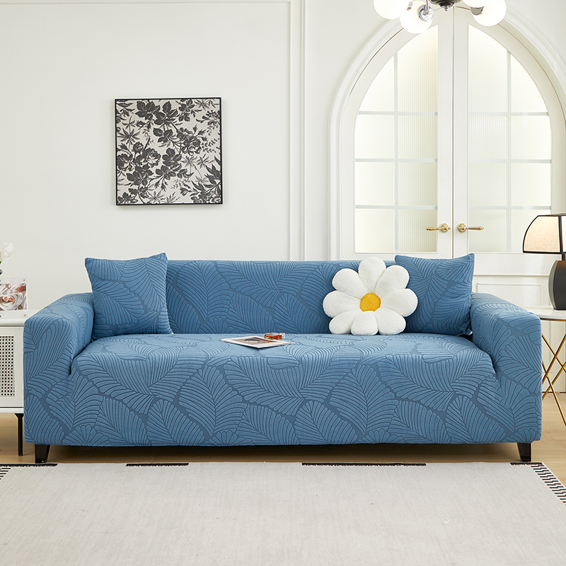 丝绮鹿 2025新款雕花绒大叶子沙发套松紧款(三人图) 米白