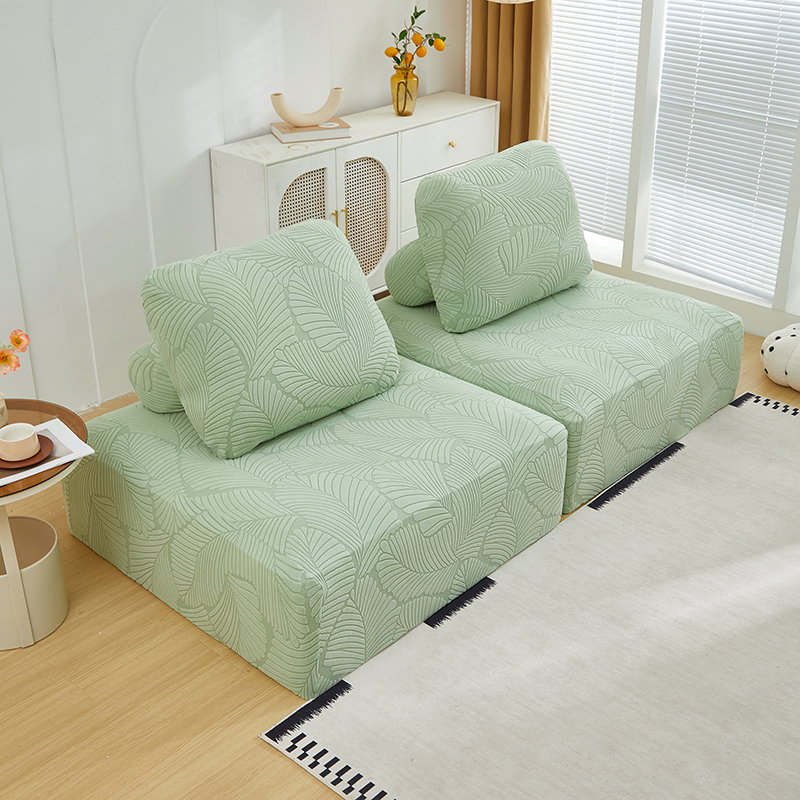 丝绮鹿 2025新款雕花绒大叶子方块沙发套 浅灰