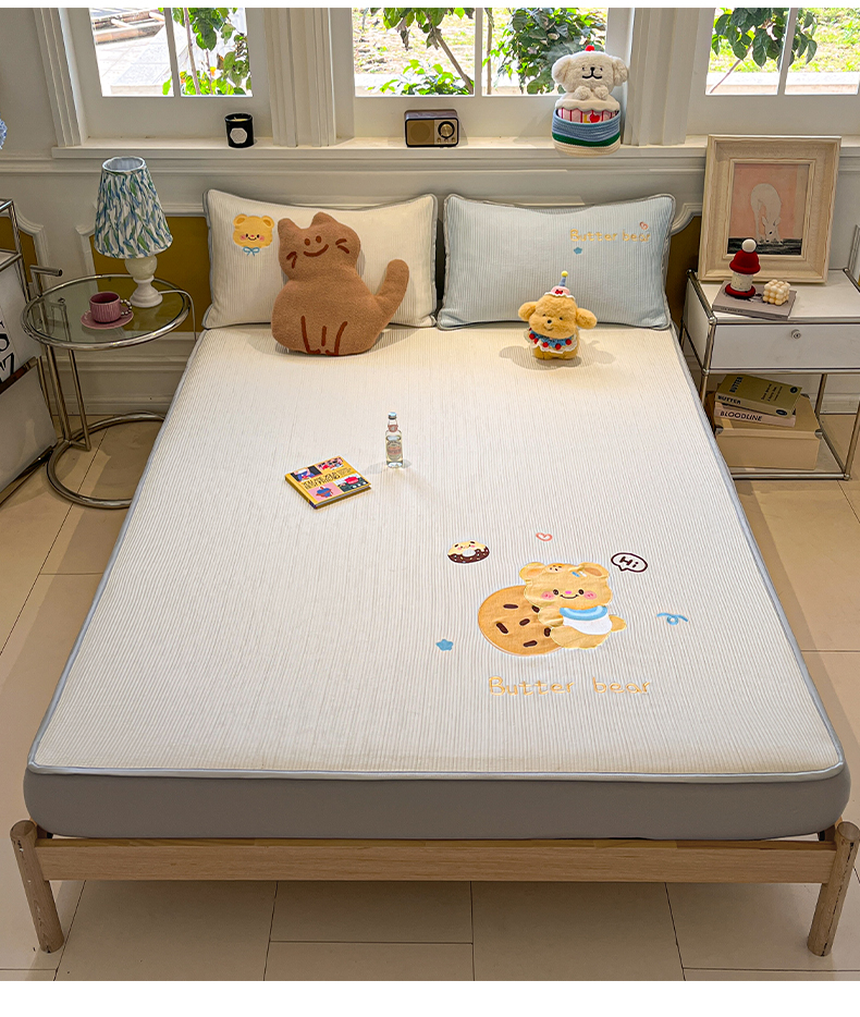 如一 2025春夏新款A类卡通刺绣PE中分子冰豆豆凉感软席凉席席子 床笠款-黄油小熊