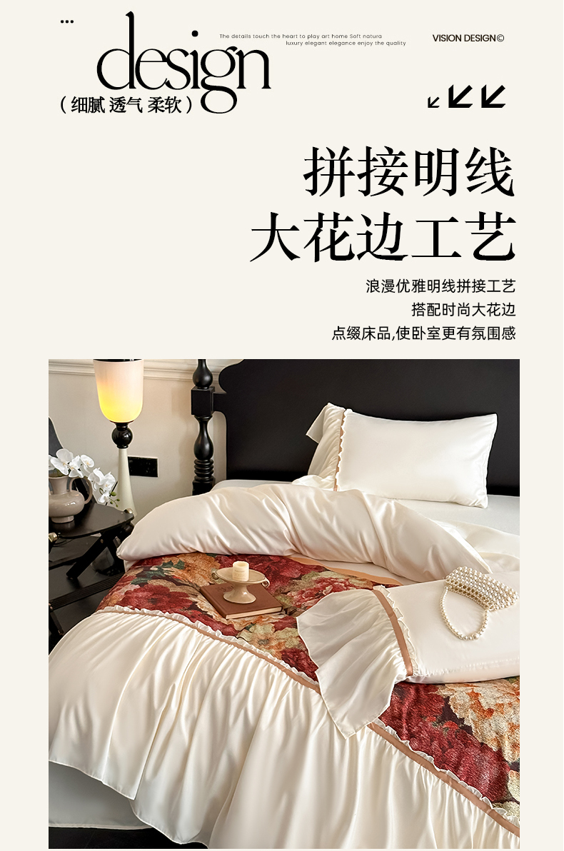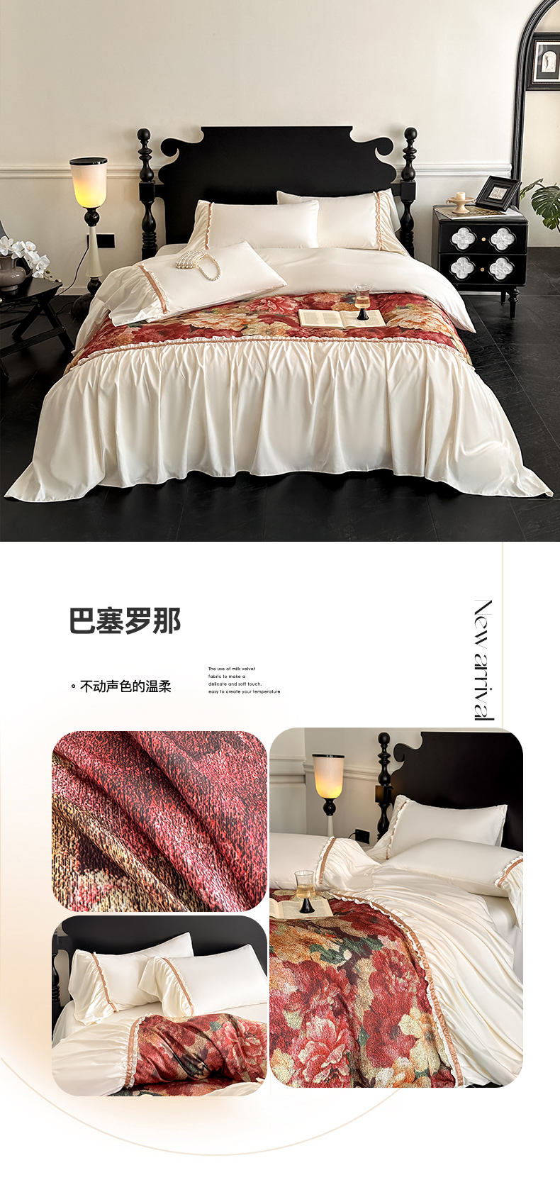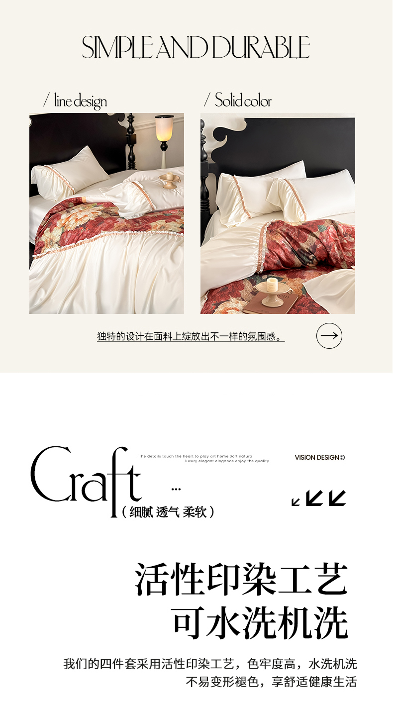 (总)千希家纺2025新款水洗真丝大花边四件套