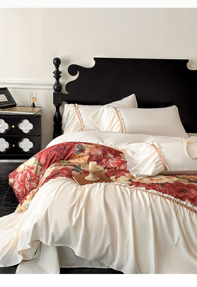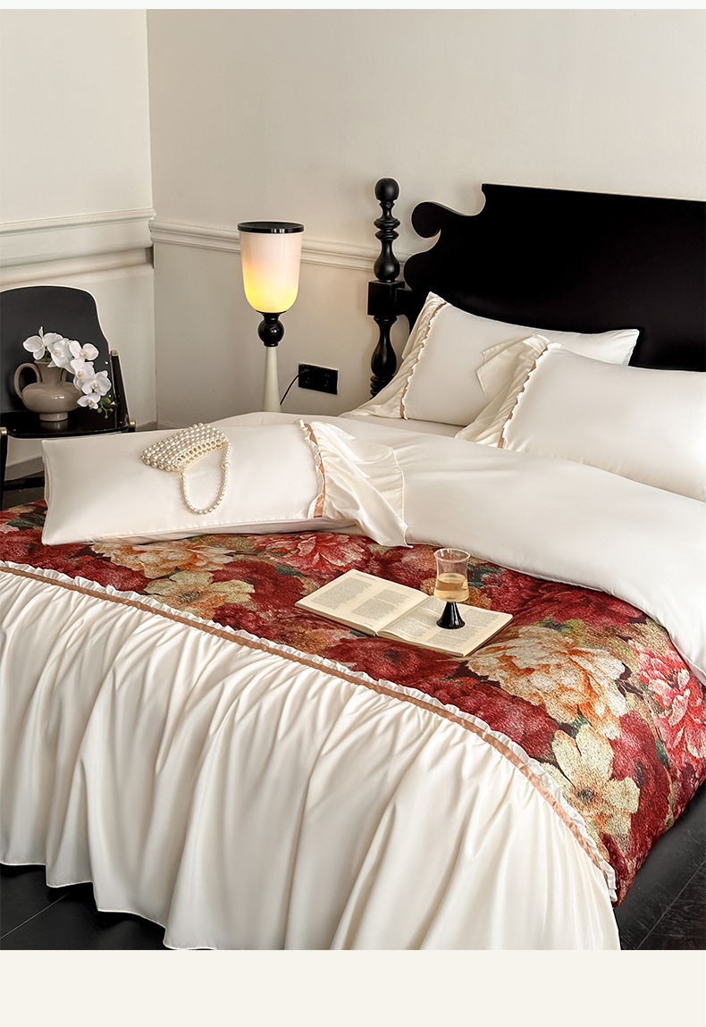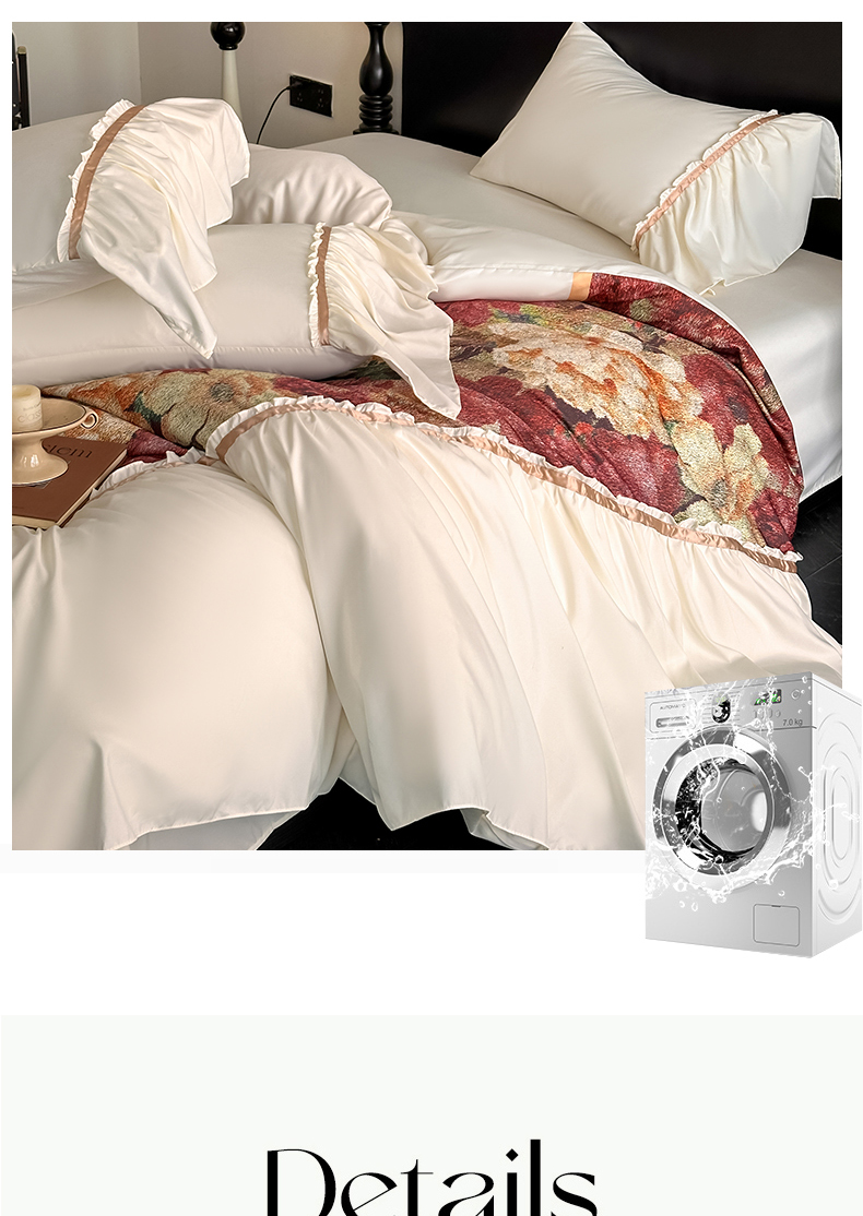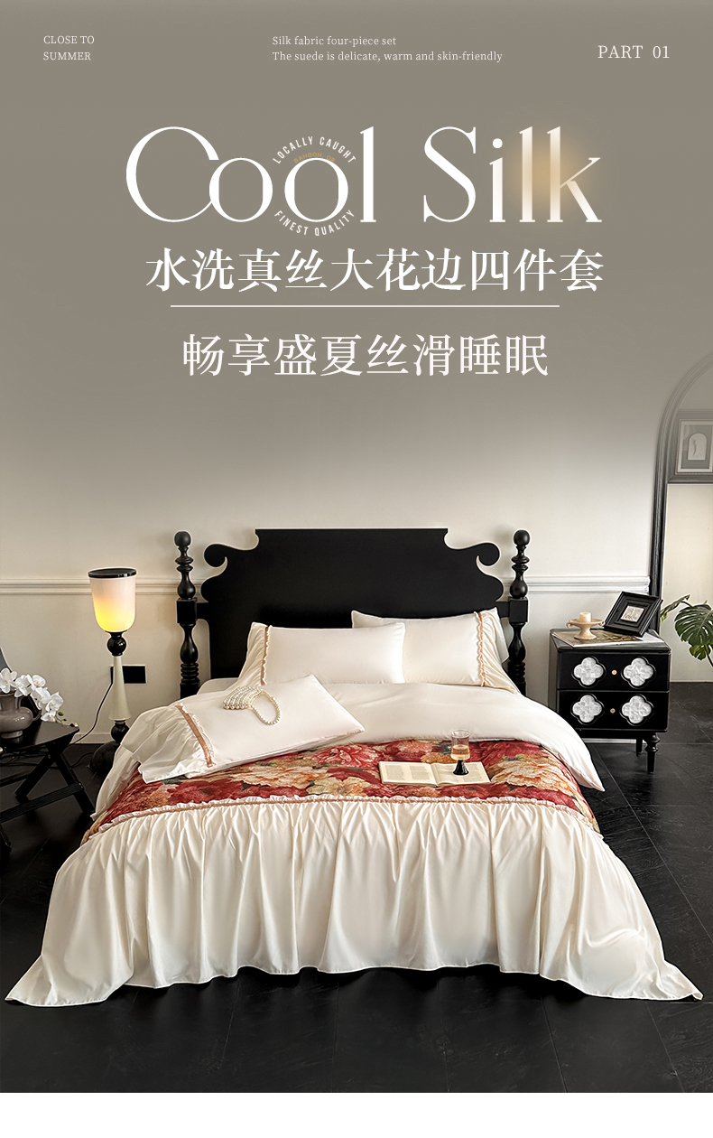 (总)千希家纺2025新款水洗真丝大花边四件套