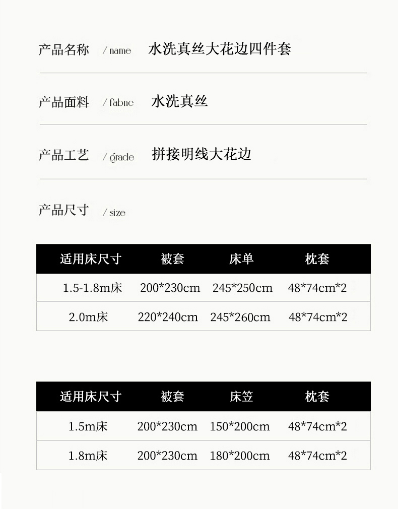 商品名称:(总)千希家纺2025新款水洗真丝大花边四件套