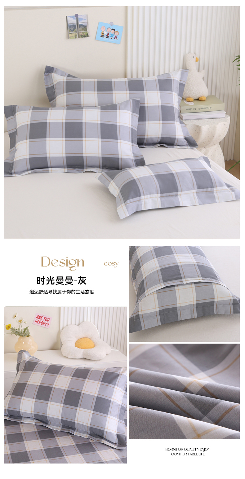 床上用品 > 枕套 > 凯森家纺 新款13372全棉枕套单人枕头套枕芯套儿童枕套30x50cm成人40x60cm48x74cm 时光慢慢-灰