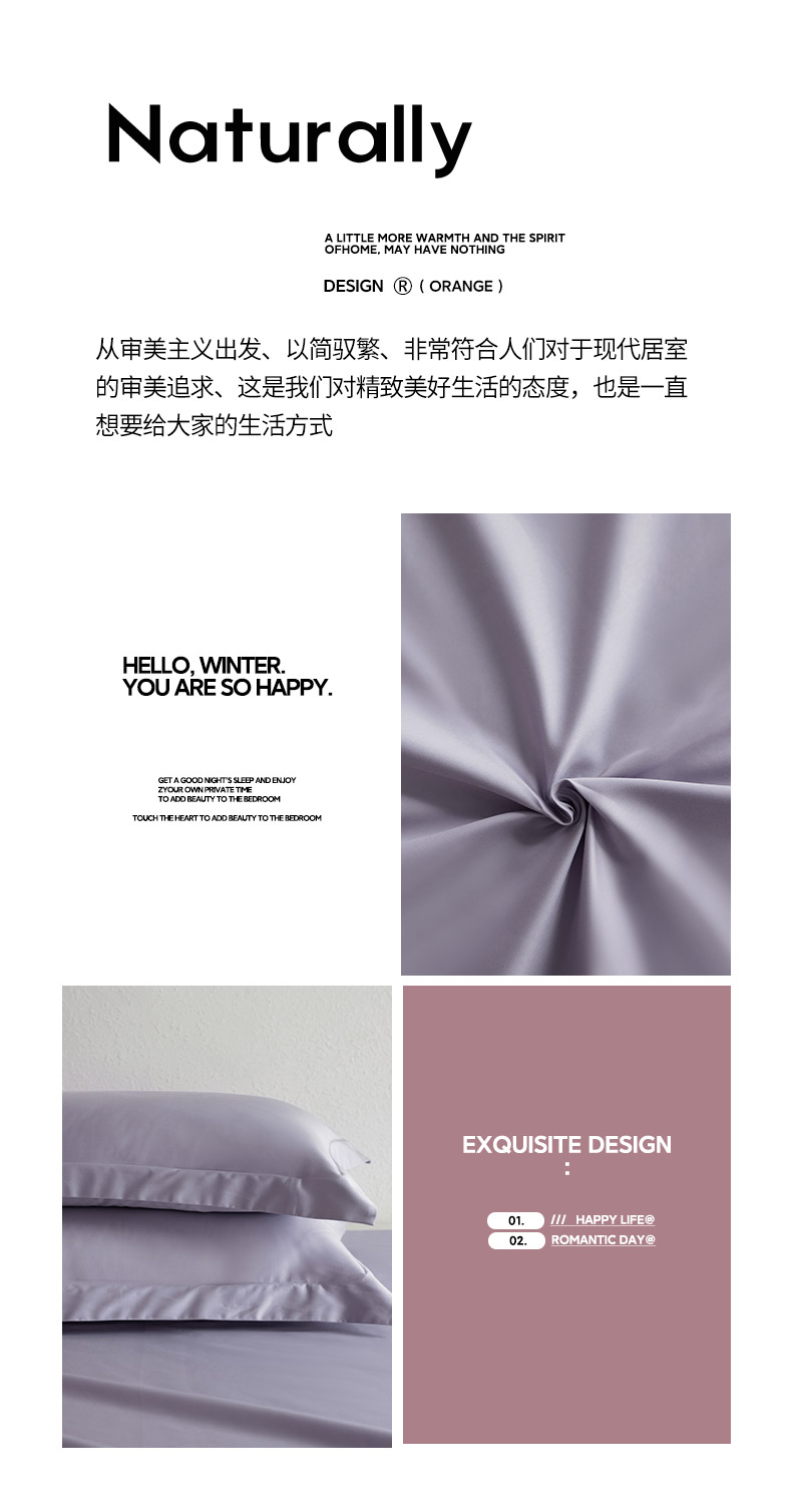轩和家居 2025新款50S贡缎长绒棉纯棉单枕套单品枕套枕套单件 仙仙紫