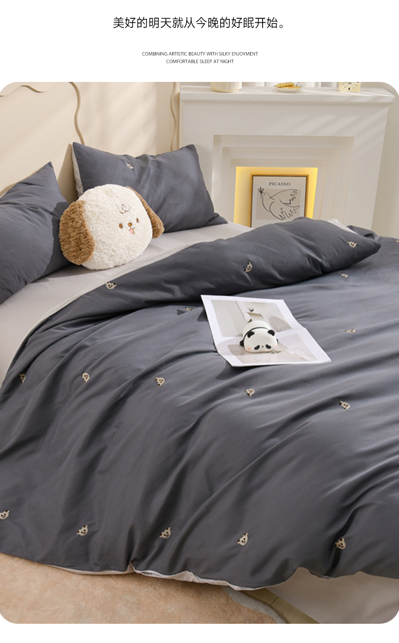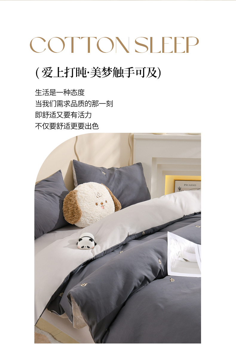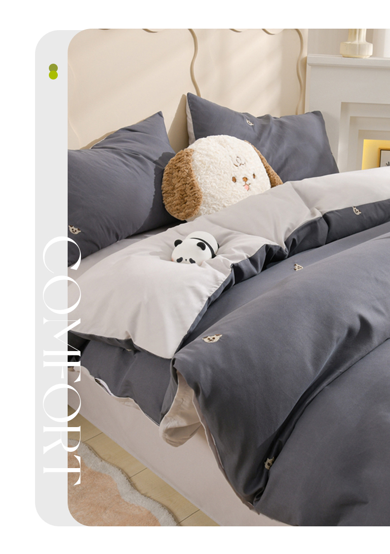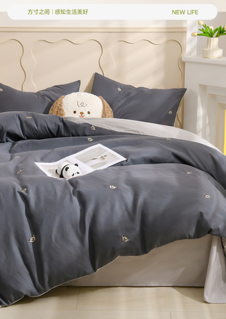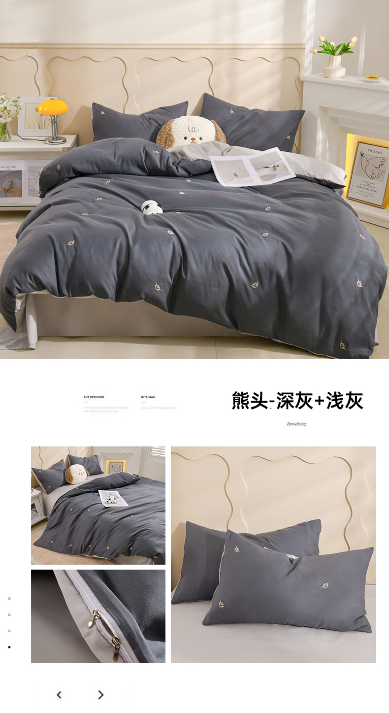 当前位置: 91家纺网 > 商品网购 > 床品套件 > 四件套 > 水洗棉四件套 > 推推家纺 2025新款刺绣水洗棉小清新四件套 熊头-深灰+浅灰