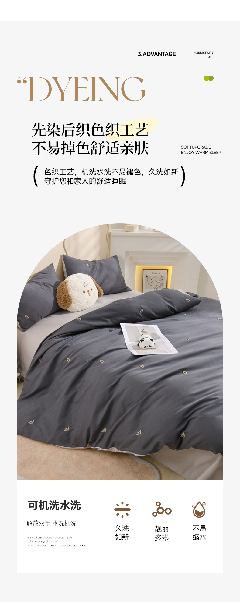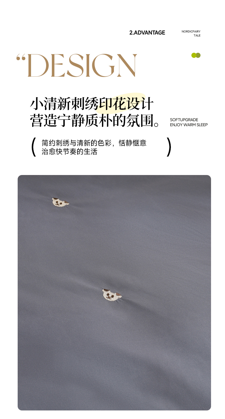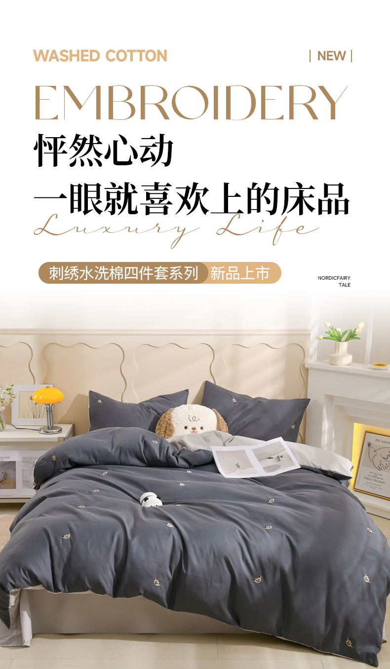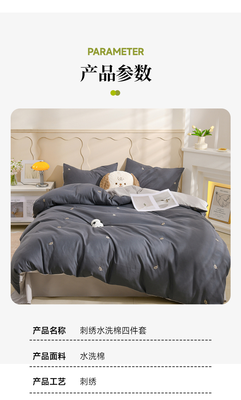 当前位置: 91家纺网 > 商品网购 > 床品套件 > 四件套 > 水洗棉四件套 > 推推家纺 2025新款刺绣水洗棉小清新四件套 熊头-深灰+浅灰