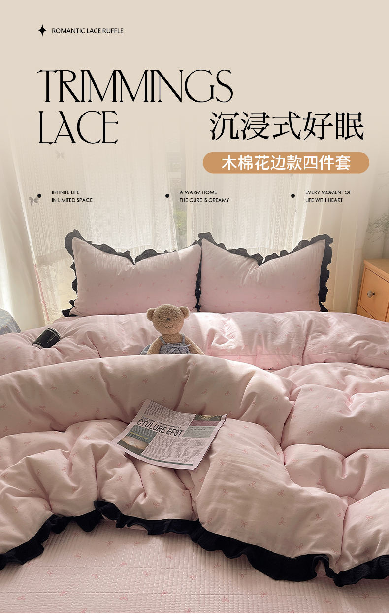 当前位置: 91家纺网 > 商品网购 > 床品套件 > 四件套 > 水洗棉四件套 > 繁花家居 2025新款韩式水洗棉床盖四件套直播爆款 韩式水洗棉床盖-白粉结