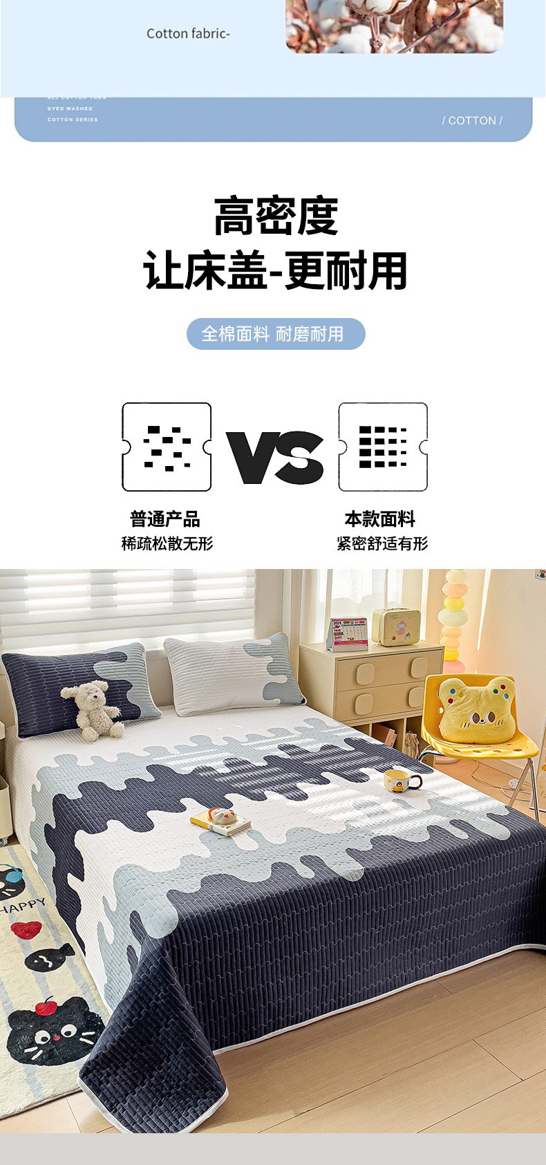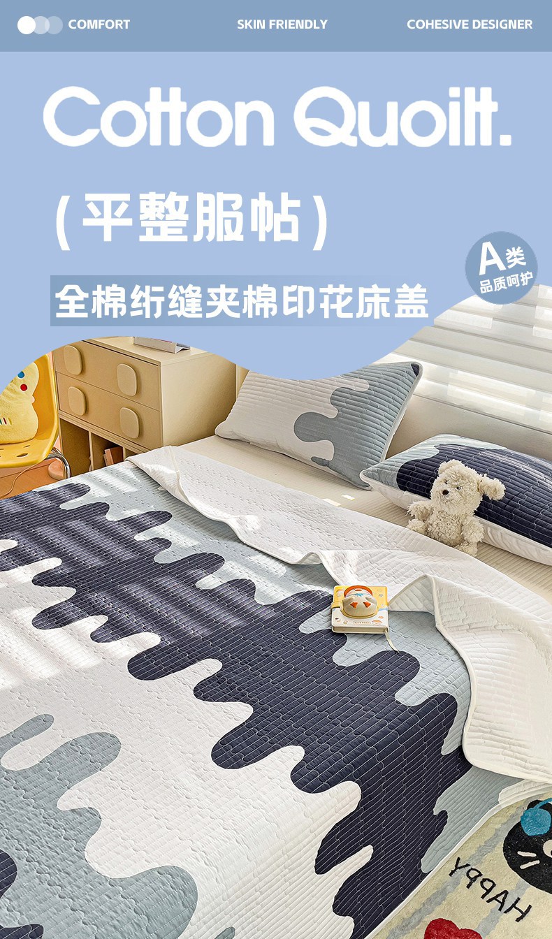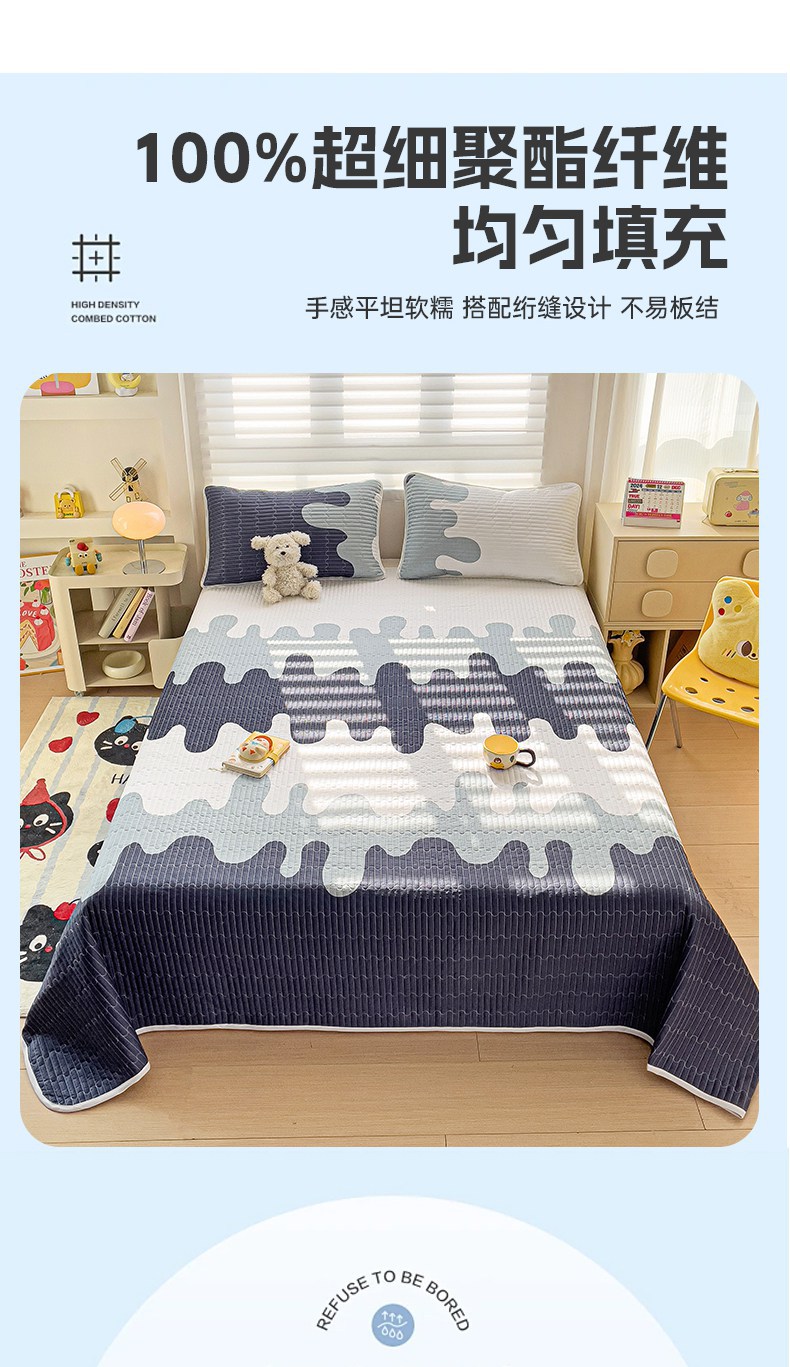 • 91家纺网 家纺一手货源 找家纺 金鑫汇家纺 2025新款全棉绗缝夹棉印花床盖 奶油蓝