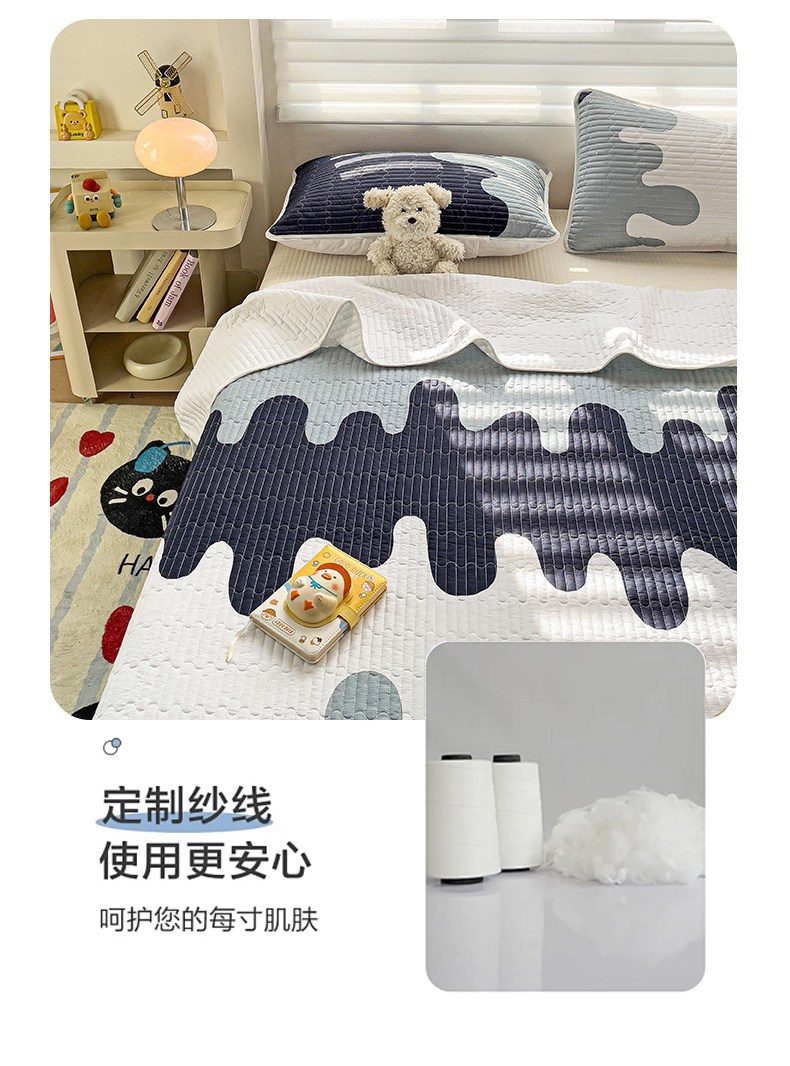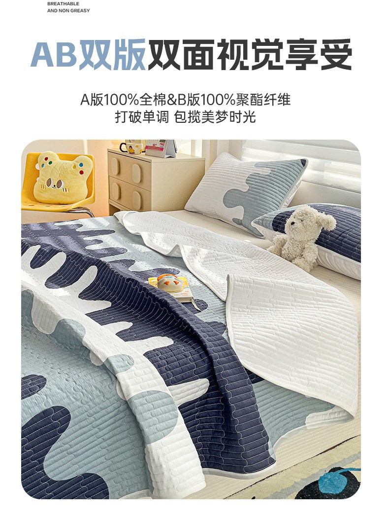 金鑫汇家纺 2025新款全棉绗缝夹棉印花床盖 奶油蓝