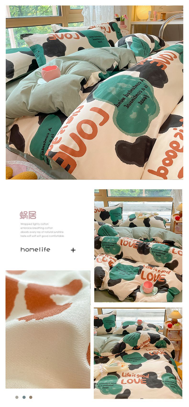 (总)金鑫汇家纺 2026新款全棉印花小清新四件套系列-可露丽,海盐可露丽,浅咖可露丽,浅绿可露丽,月下花影-桔,月下花影-蓝,月下花影-绿