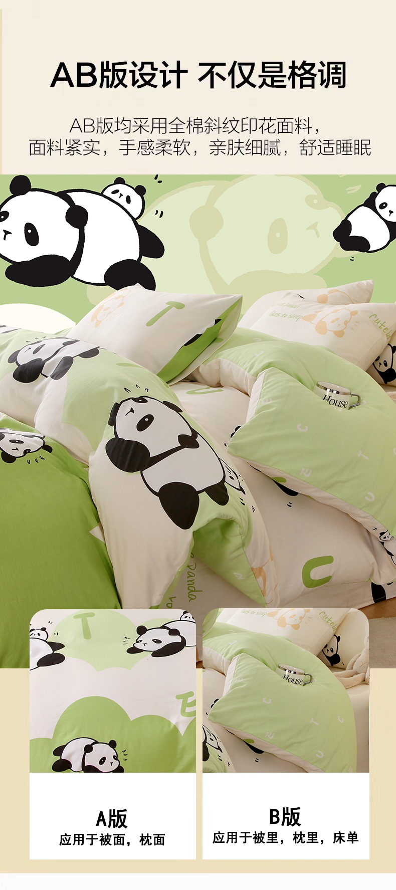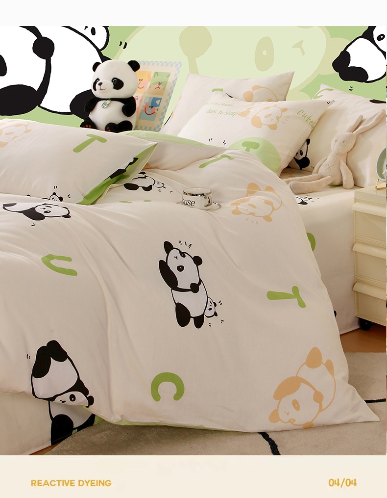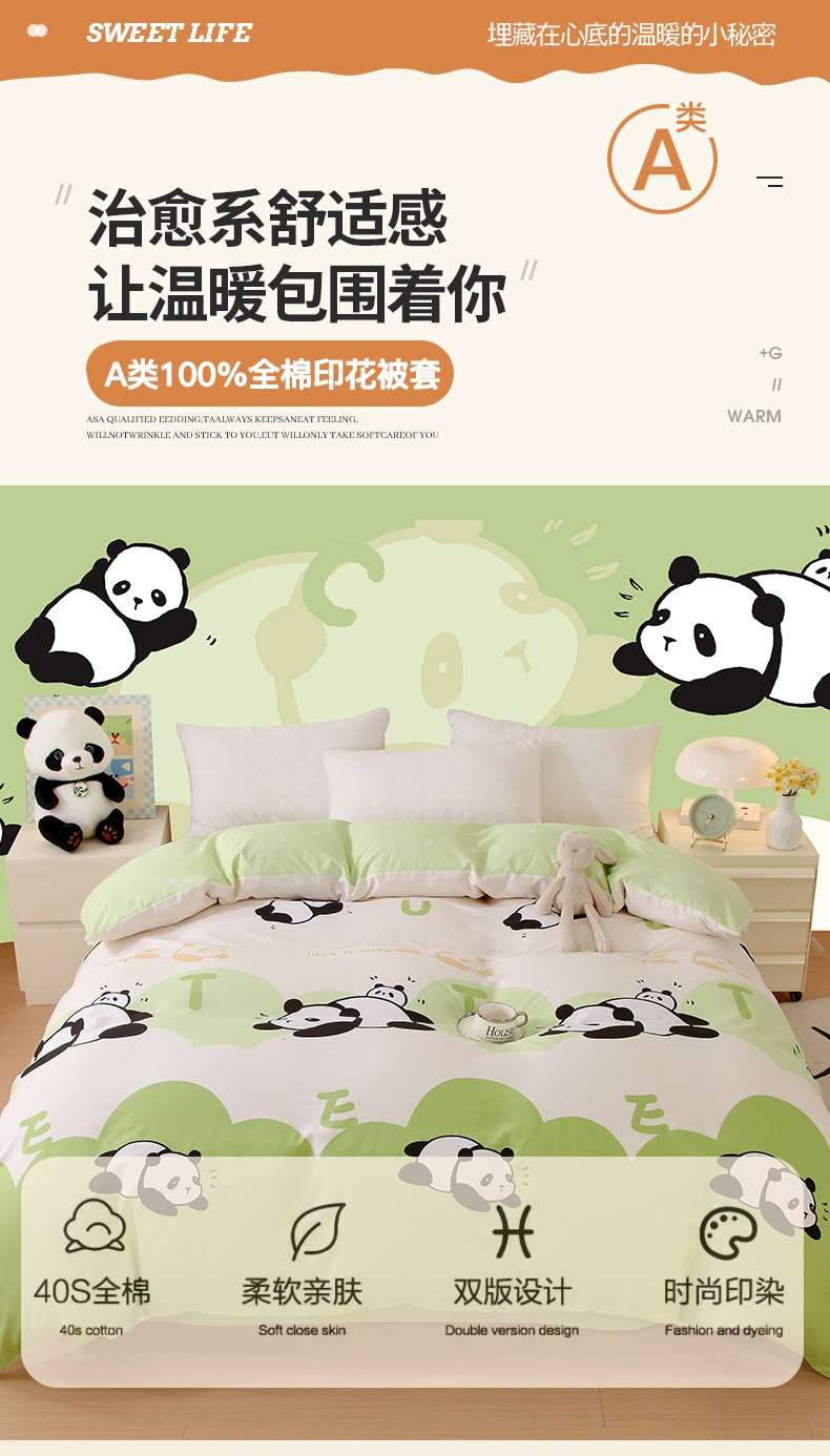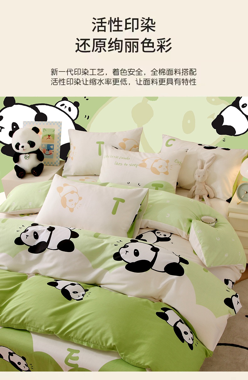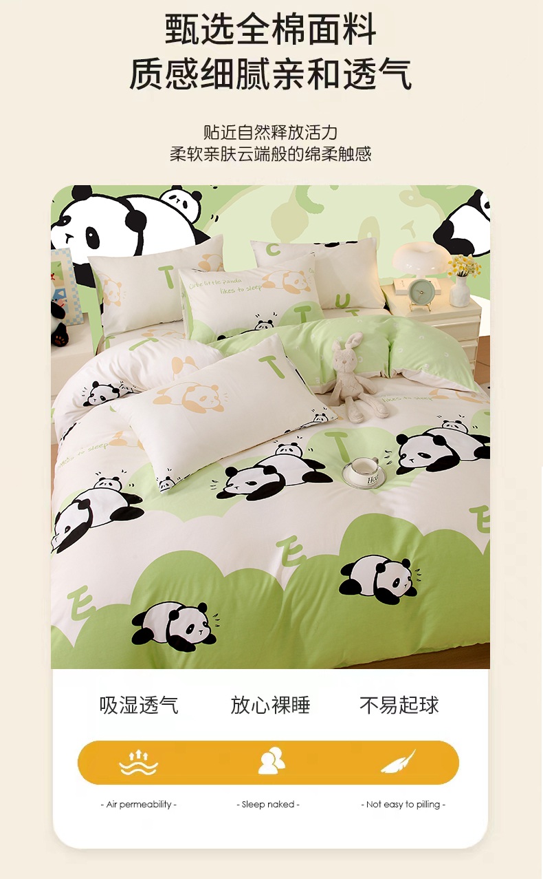 金鑫汇家纺 2025新款13070全棉好卖花型套件系列-单被套 可爱熊猫