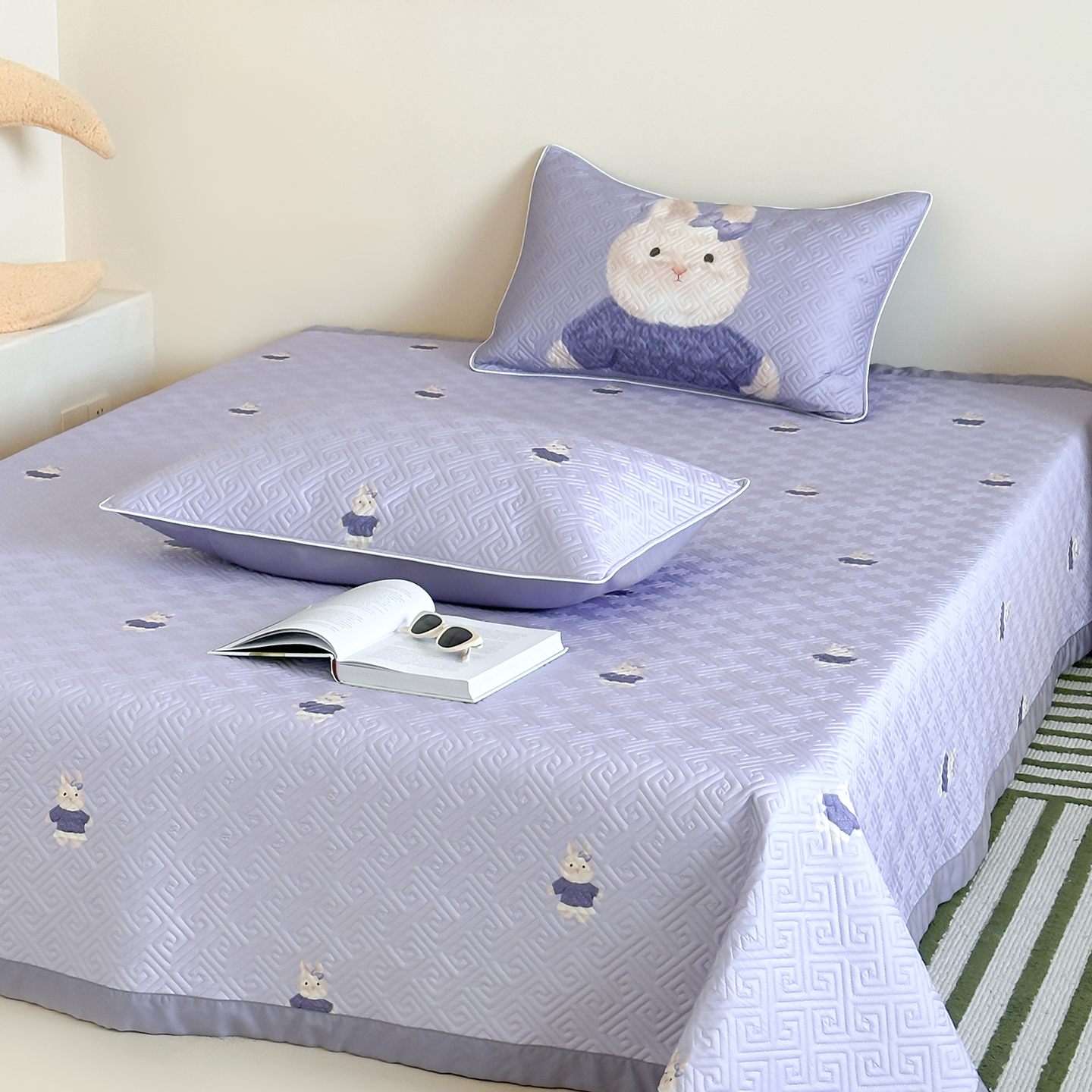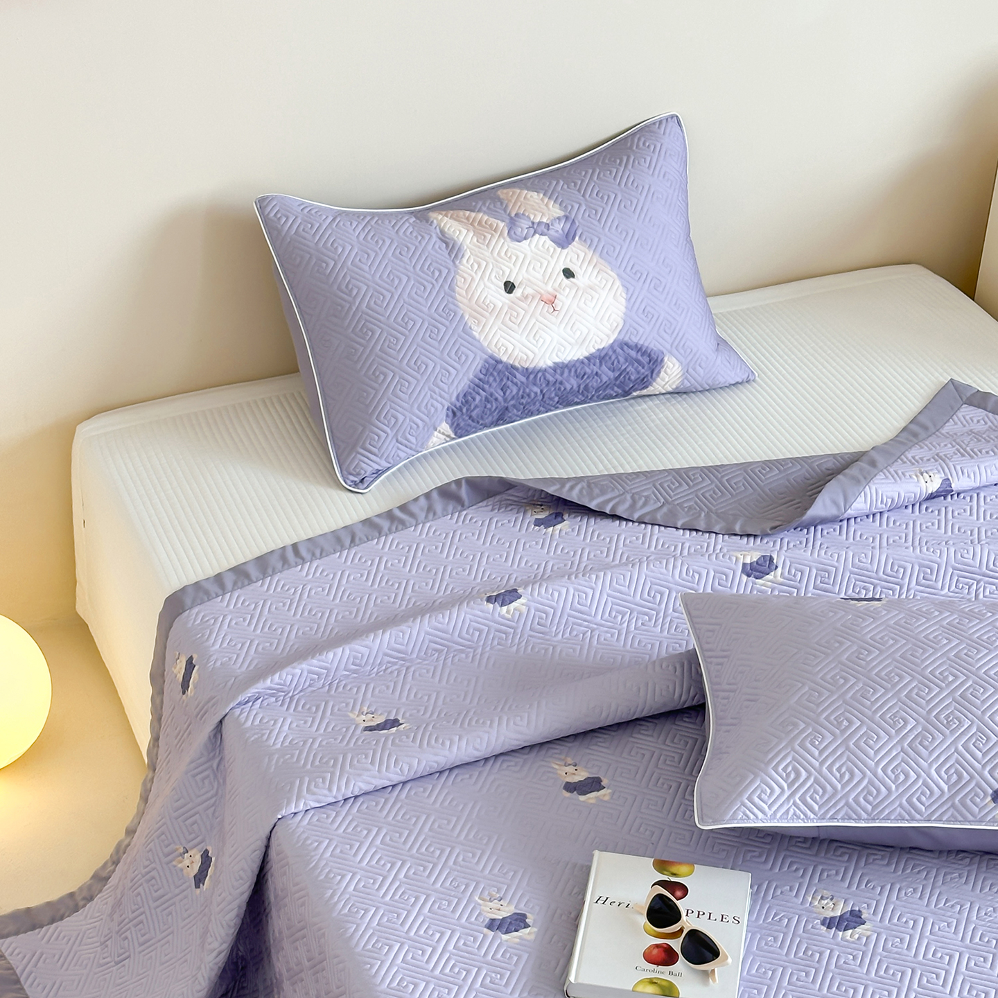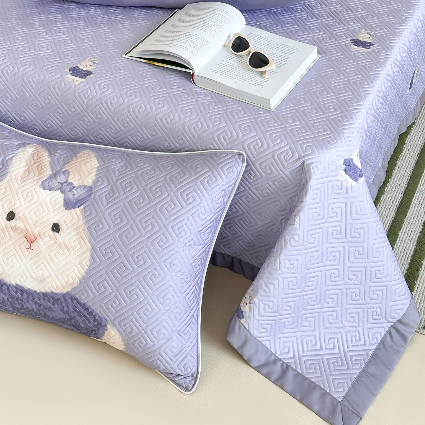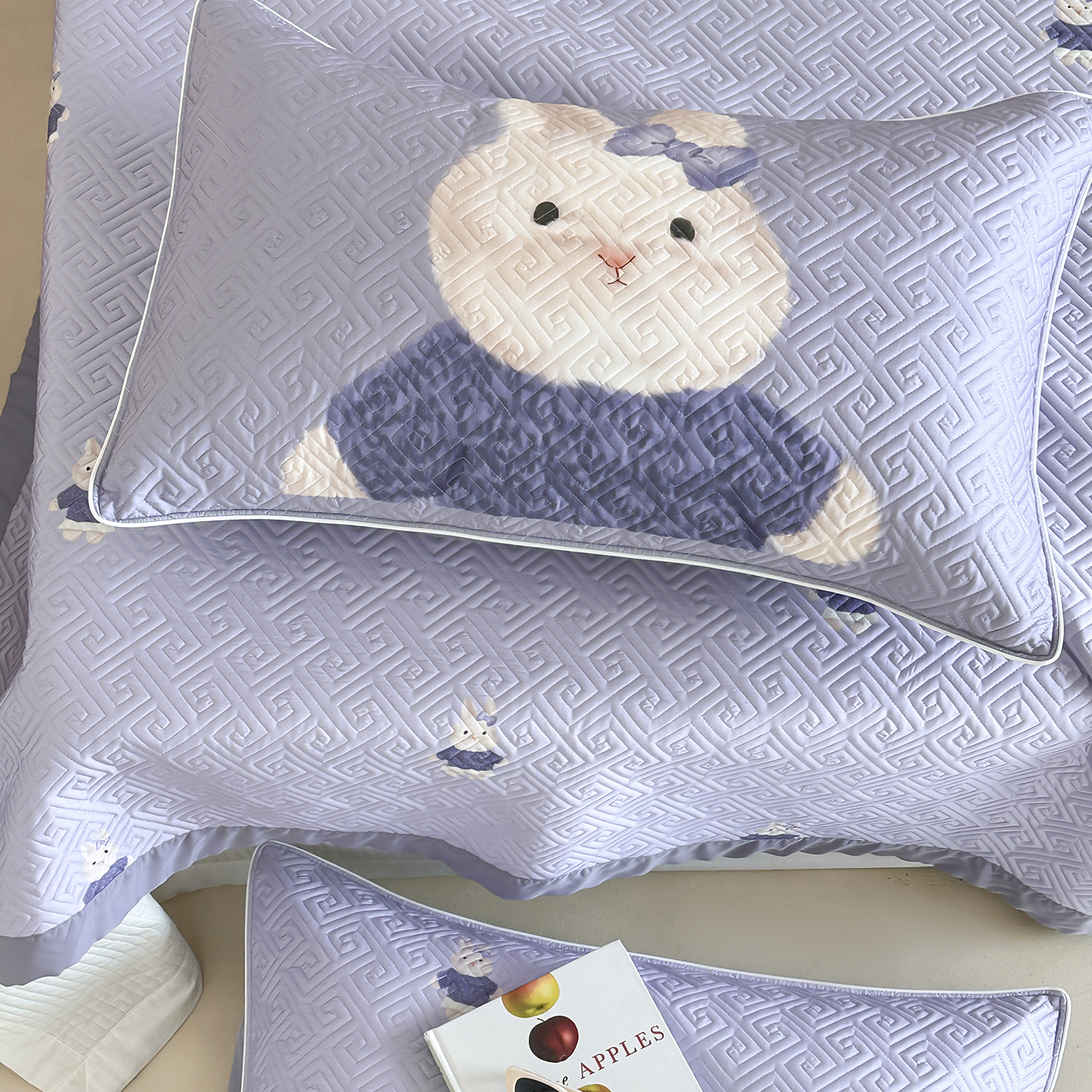 琳可家居 2025春夏新款轻奢宽边数码印花兰精天丝床盖萌物系列 乐薇兔兔