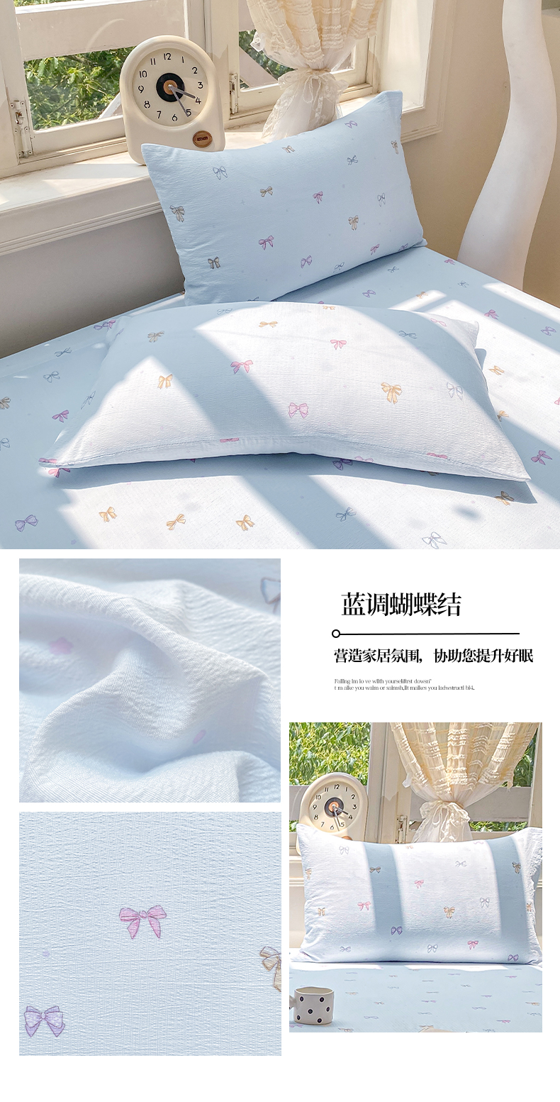 商品名称:眠势力 2025新款云感双层纱枕套ins奶油风云感超柔枕头套 蓝调蝴蝶结