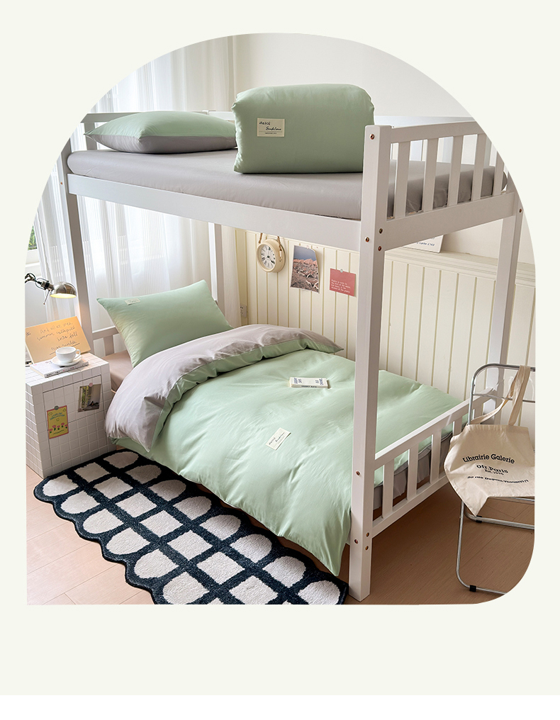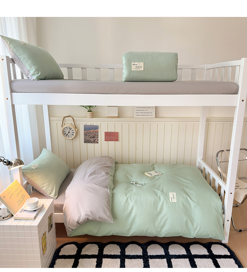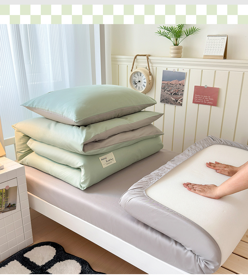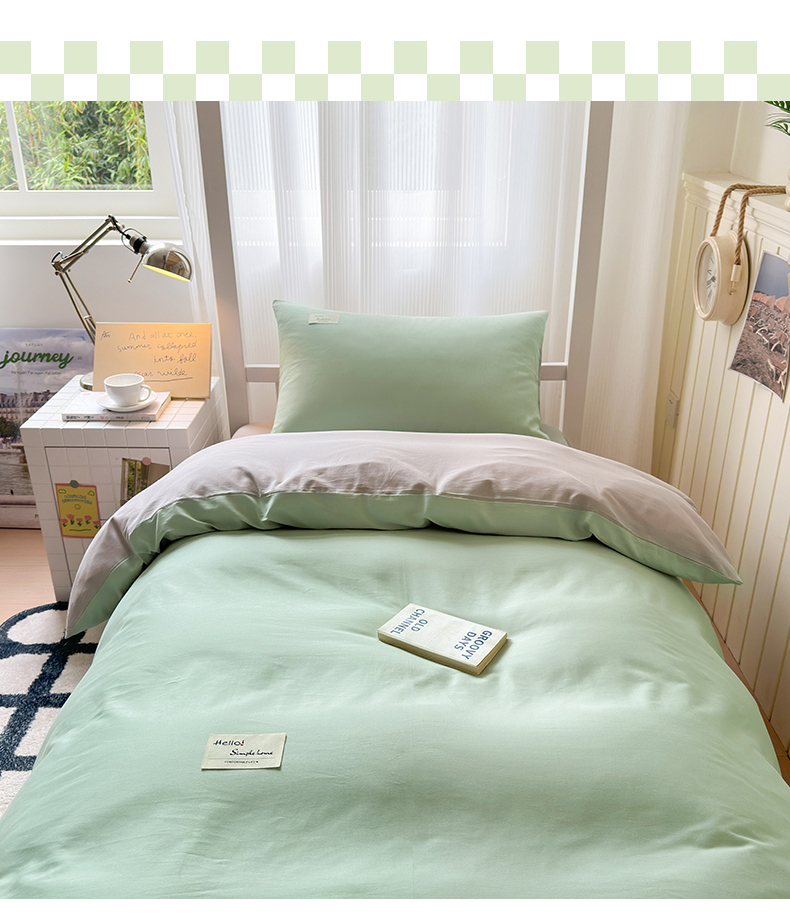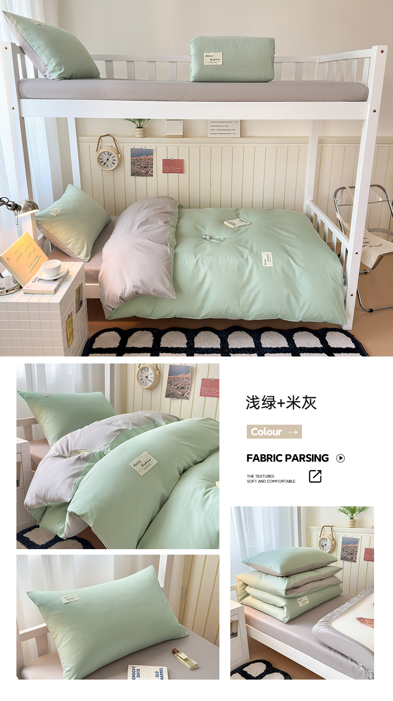 当前位置: 91家纺网 > 商品网购 > 床品套件 > 三件套 > 曼之夏 2025新款全棉拼色纯色宿舍学生三件套 浅绿+米灰