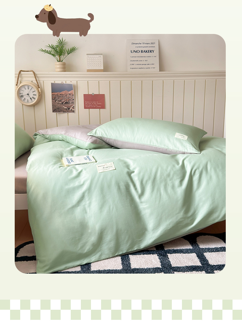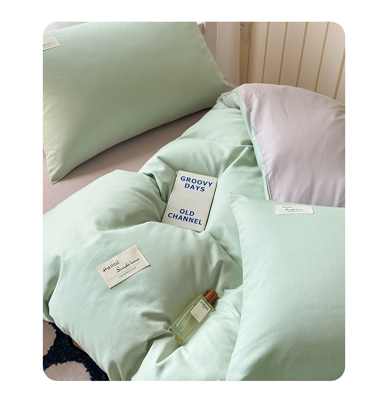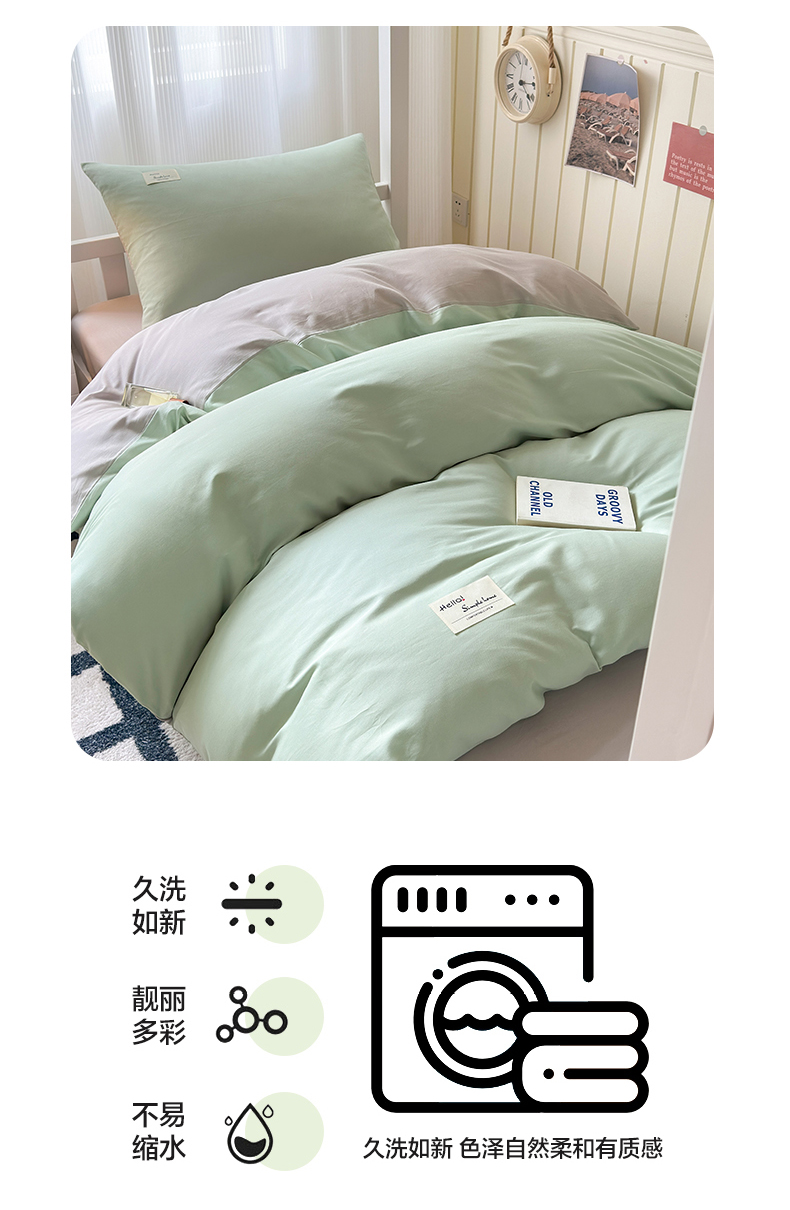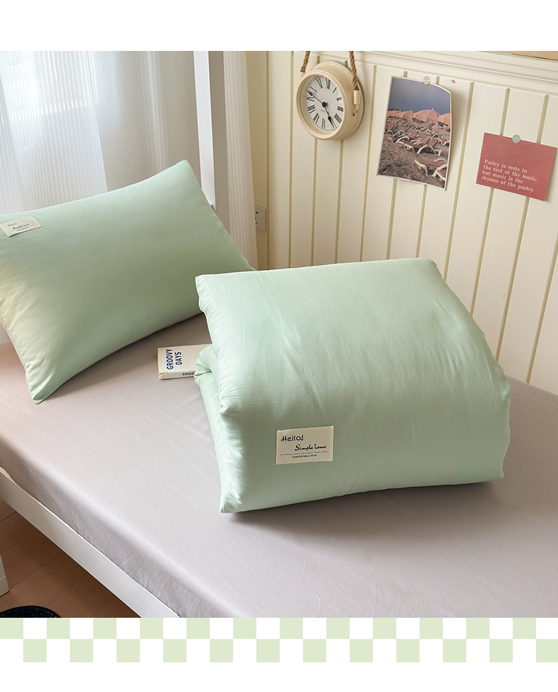 当前位置: 91家纺网 > 商品网购 > 床品套件 > 三件套 > 曼之夏 2025新款全棉拼色纯色宿舍学生三件套 浅绿+米灰