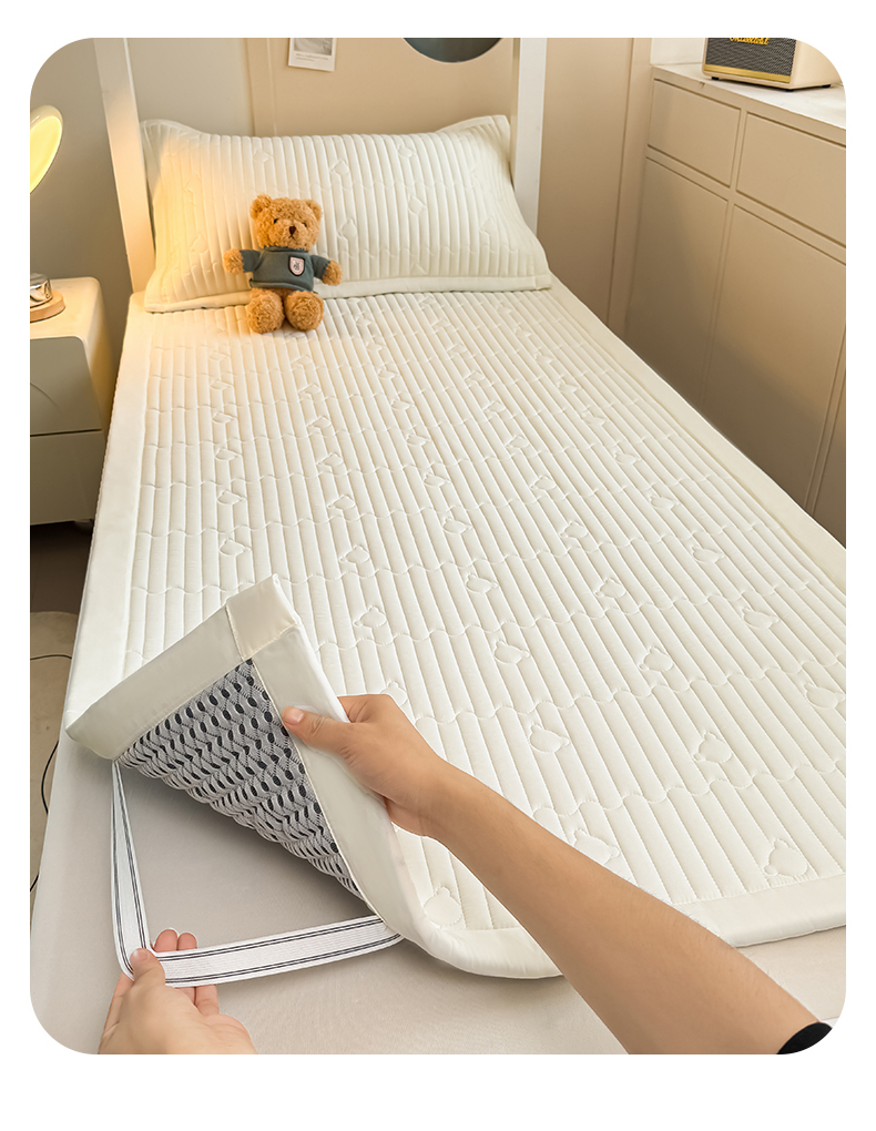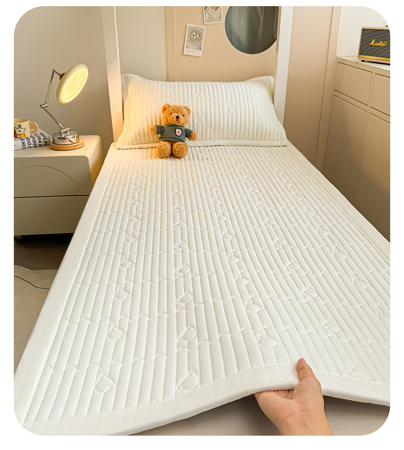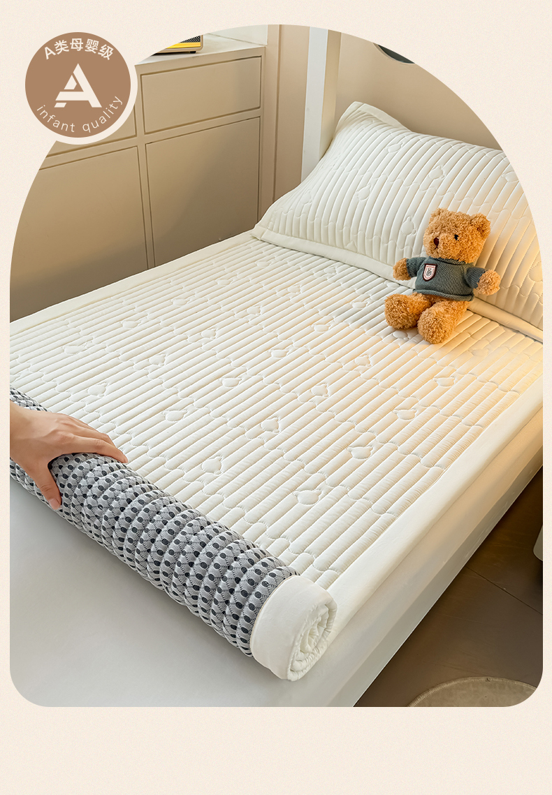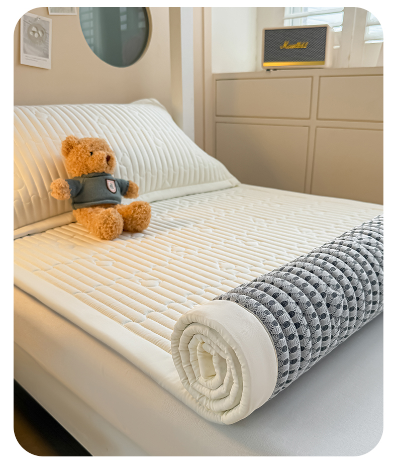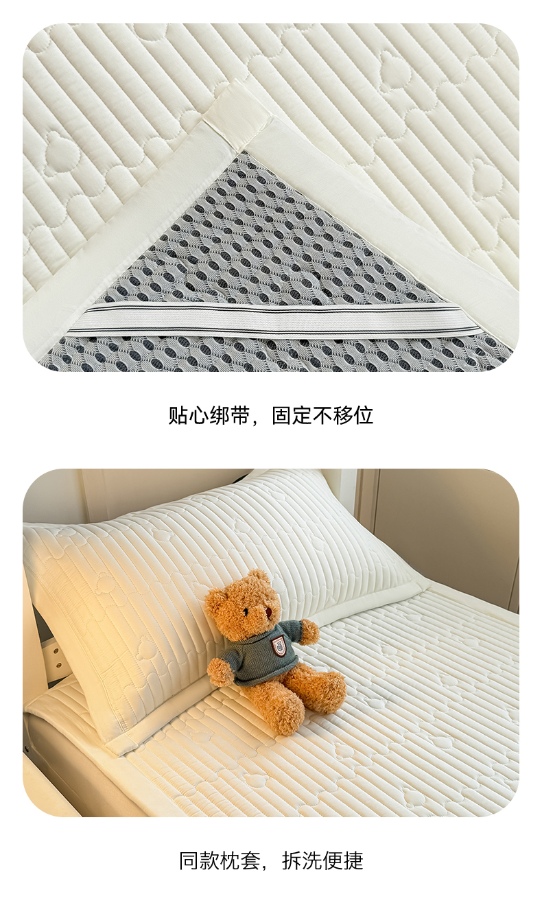 当前位置: 91家纺网 > 商品网购 > 床垫/床褥 > 普通床垫 > 雯豆家纺 2025新款学生宿舍夹棉床褥薄垫子上下铺床单人床护垫 爱心熊-床褥款月光白