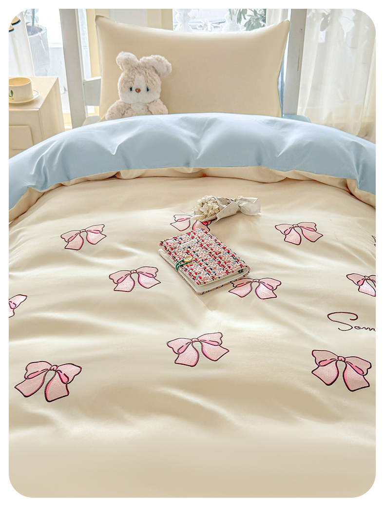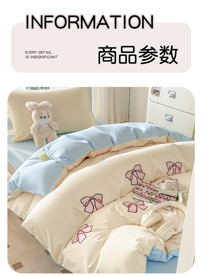 当前位置: 91家纺网 > 商品网购 > 床品套件 > 三件套 > 笙意家纺 2025亲肤水洗棉学生宿舍三件套上下铺三件套-满绣系列 蝴蝶结-奶昔白+天蓝