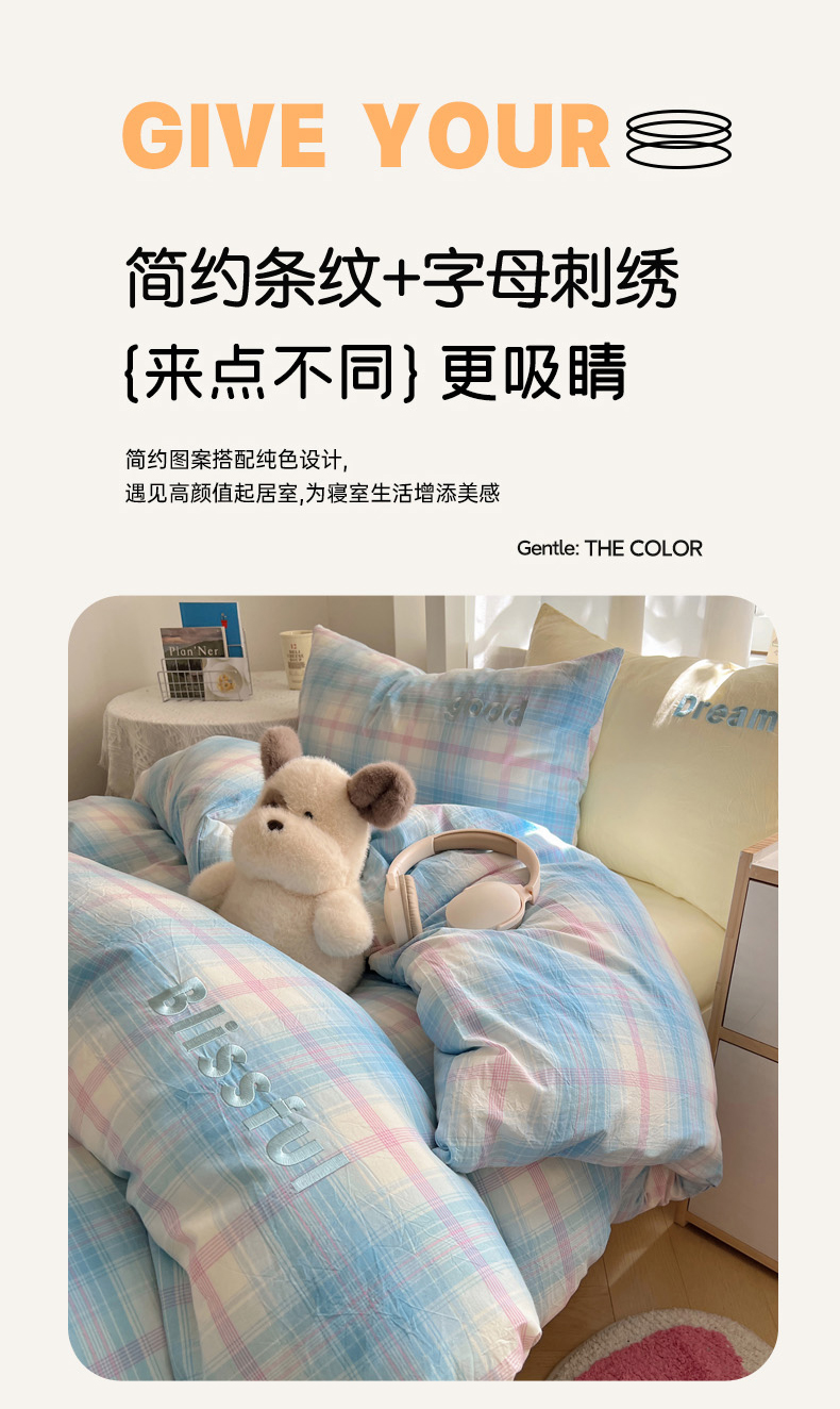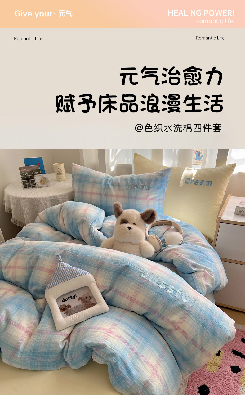 当前位置: 91家纺网 > 商品网购 > 床品套件 > 四件套 > 水洗棉四件套 > 丽涵家纺 2025新款全棉纯棉色织水洗棉刺绣三件套四件套 梦想-兰