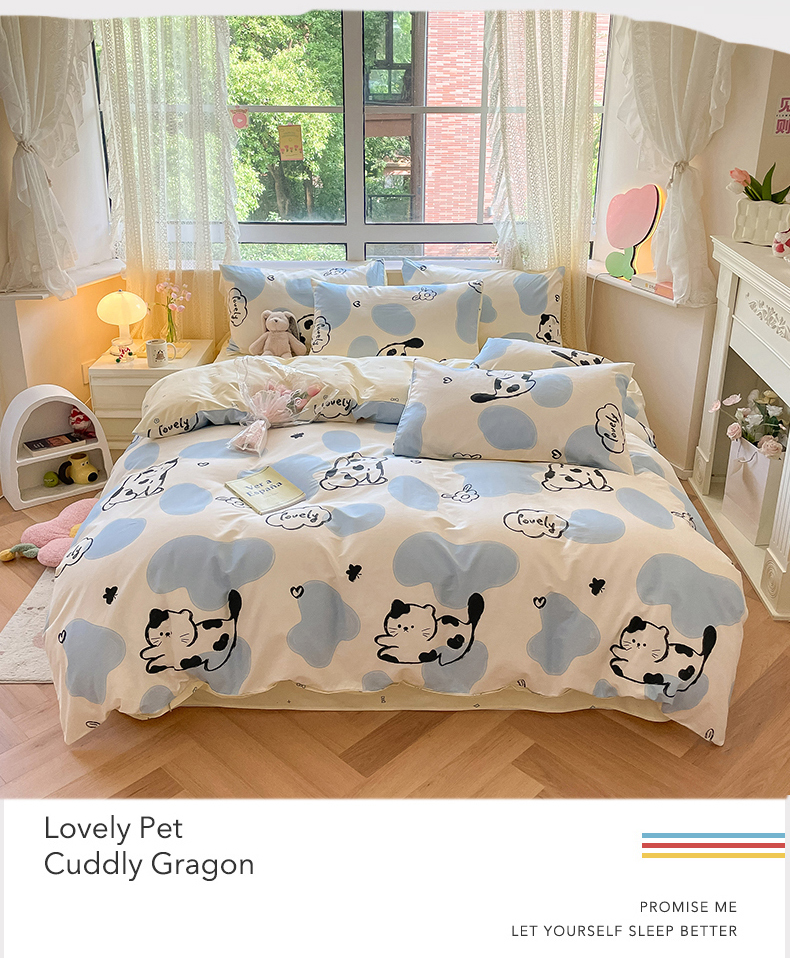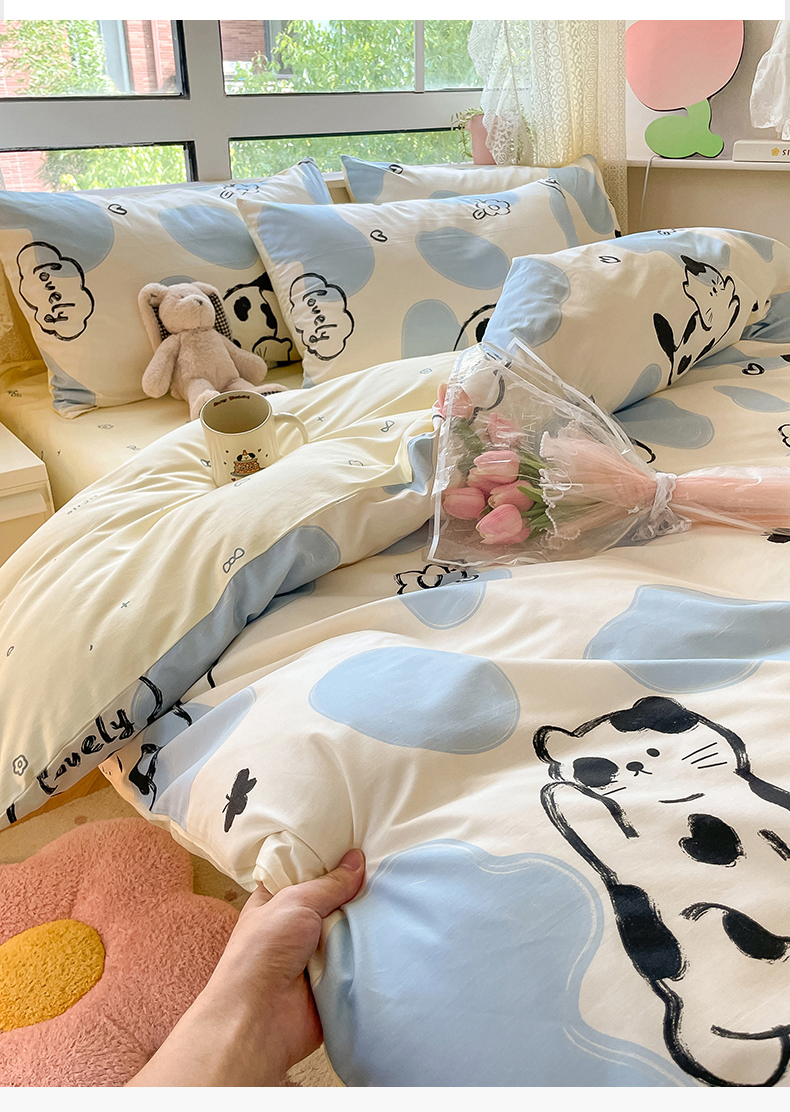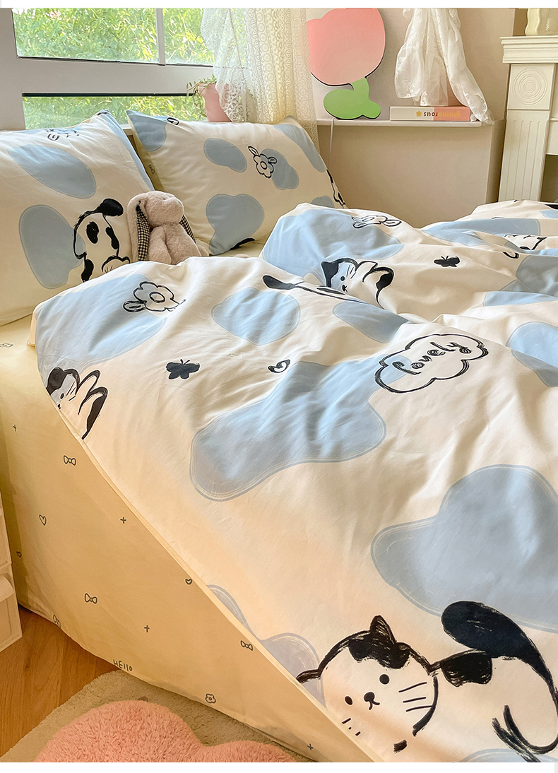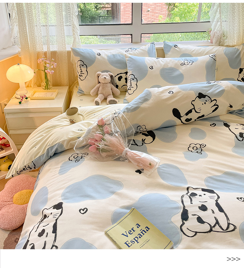 当前位置: 91家纺网 > 商品网购 > 床品套件 > 四件套 > 全棉普通四件套 > 麦伦家居 2025春夏新款全棉纯棉斜纹40s13372系列-小清新卡通 奶牛猫