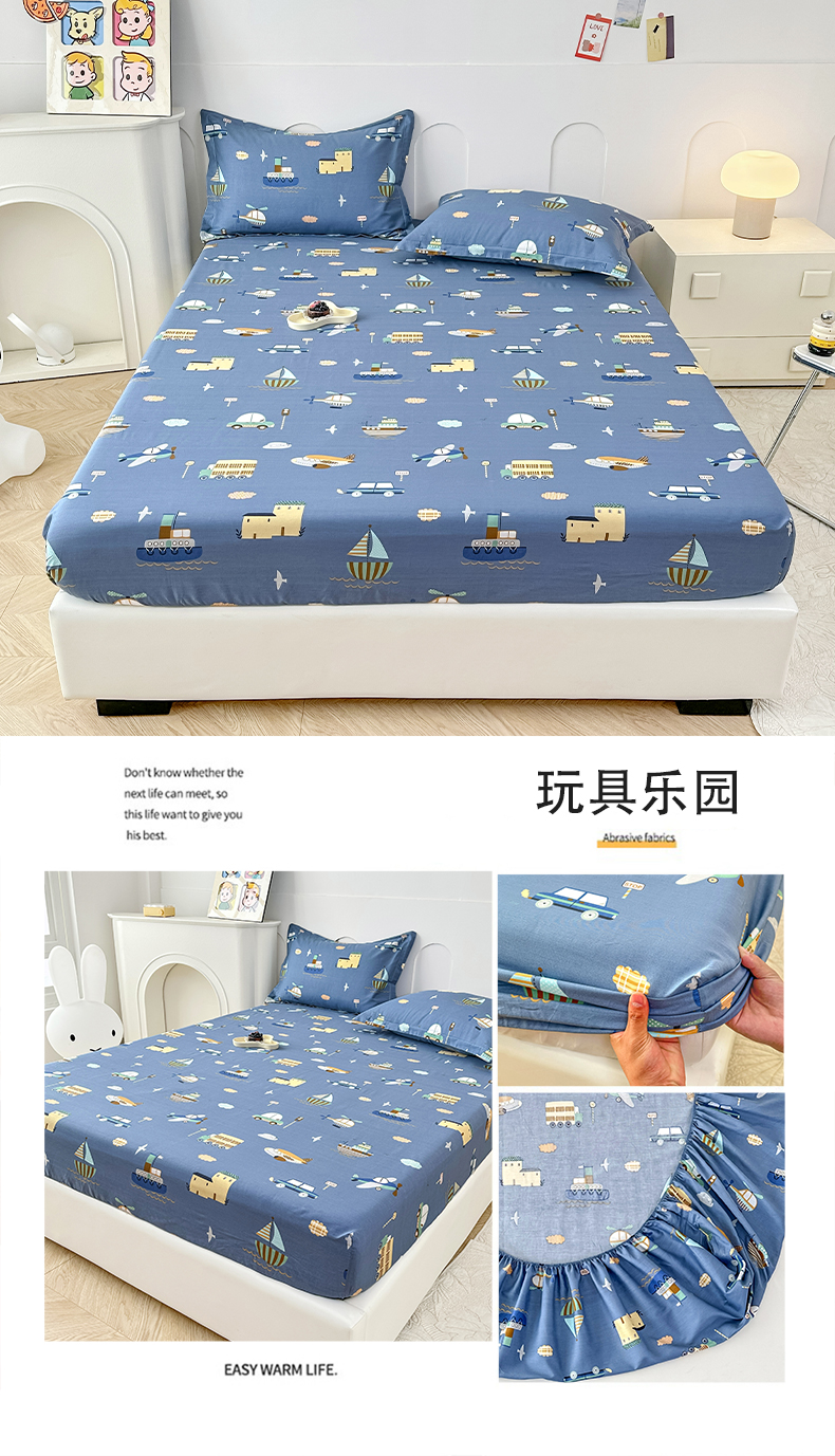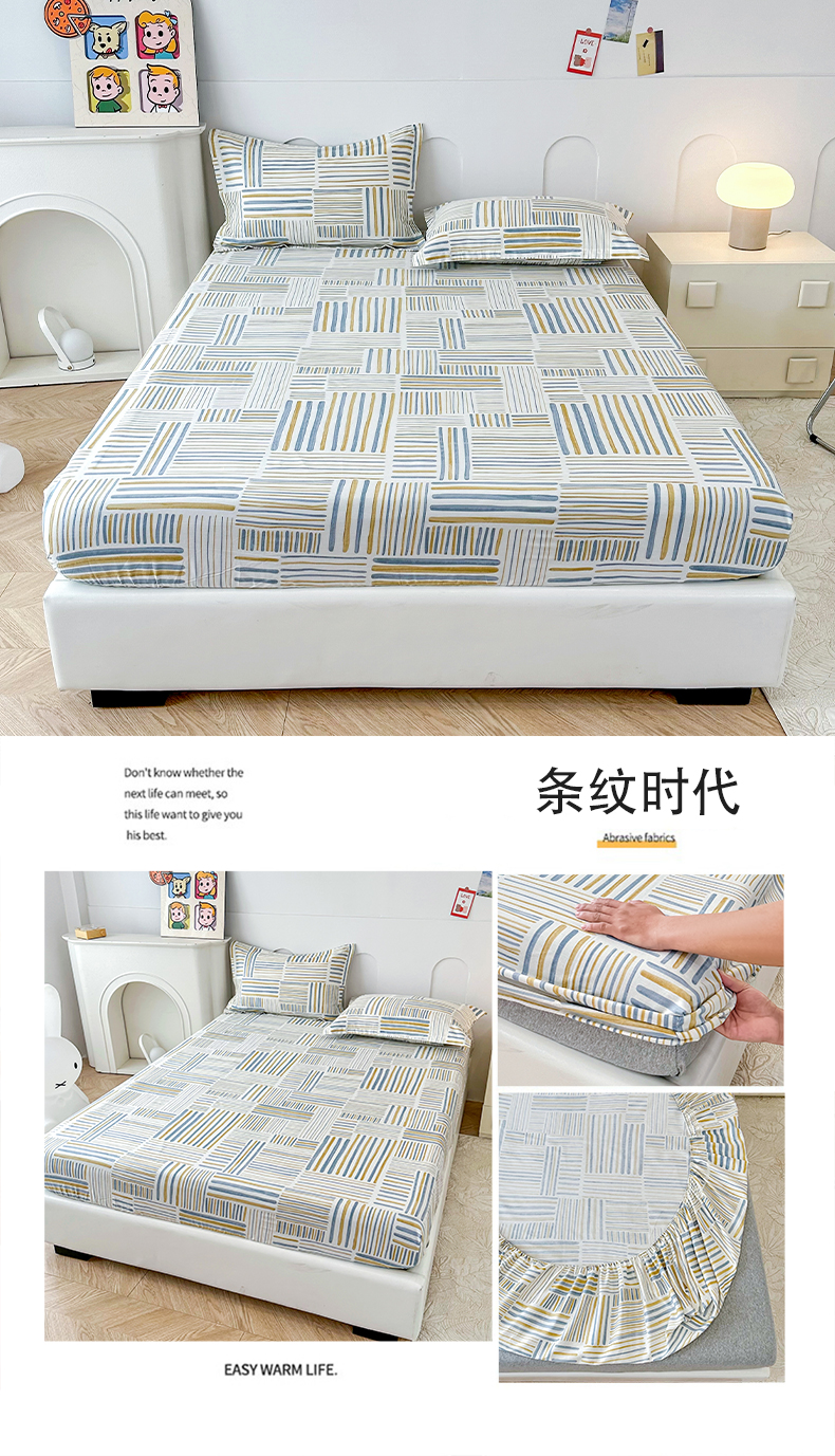 • 91家纺网 家纺一手货源 找家纺 小叮当家纺仓储工厂店 (爆款花型 长期款 不断货)2025年新款条纹卡通花卉纯棉全棉床笠三件套 花千骨