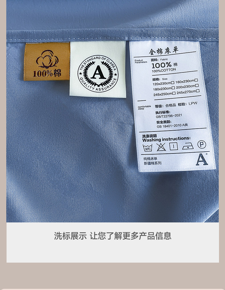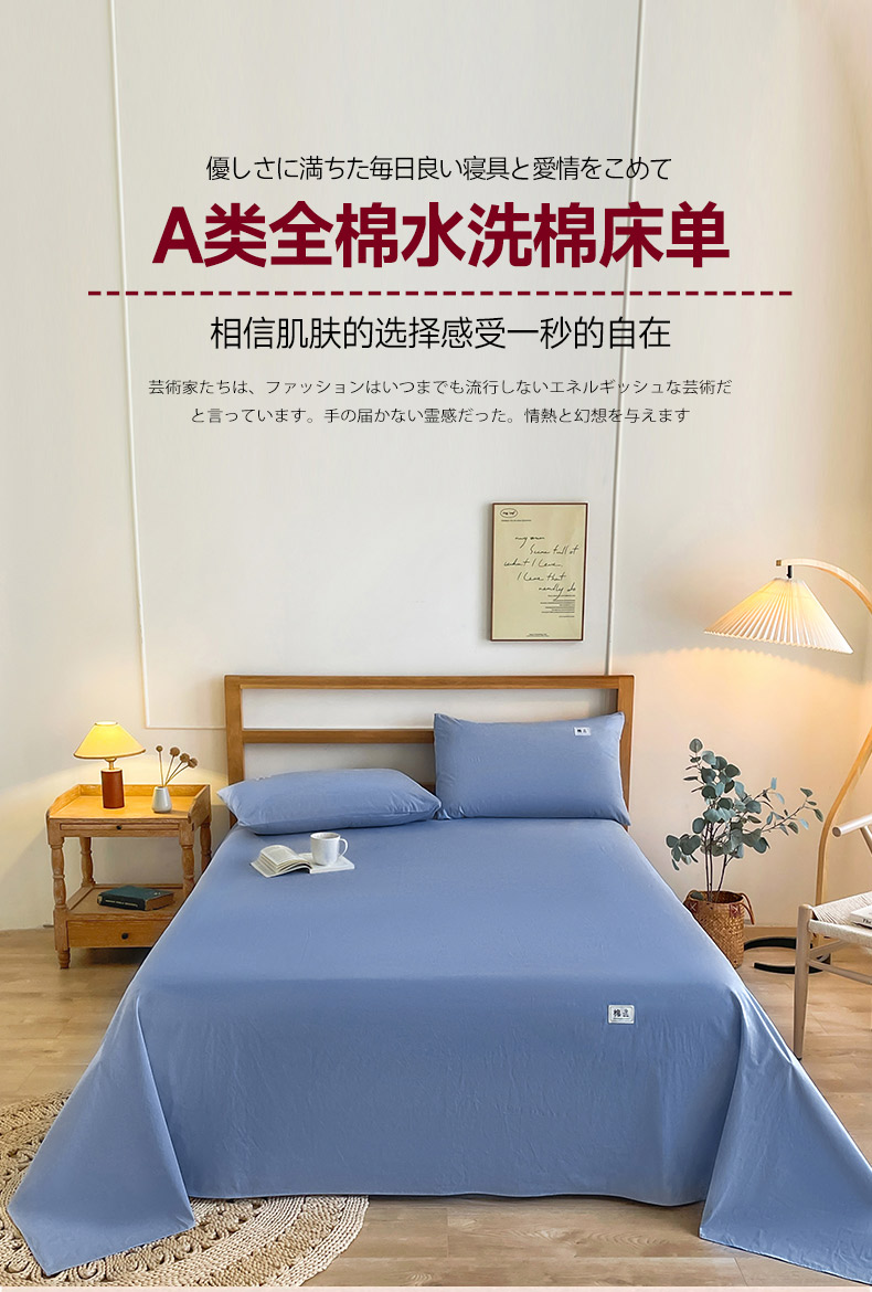 商品名称:暖芯优选 2025新款40S13376纯色全棉水洗棉单品系列床单单件-单床单 深蓝