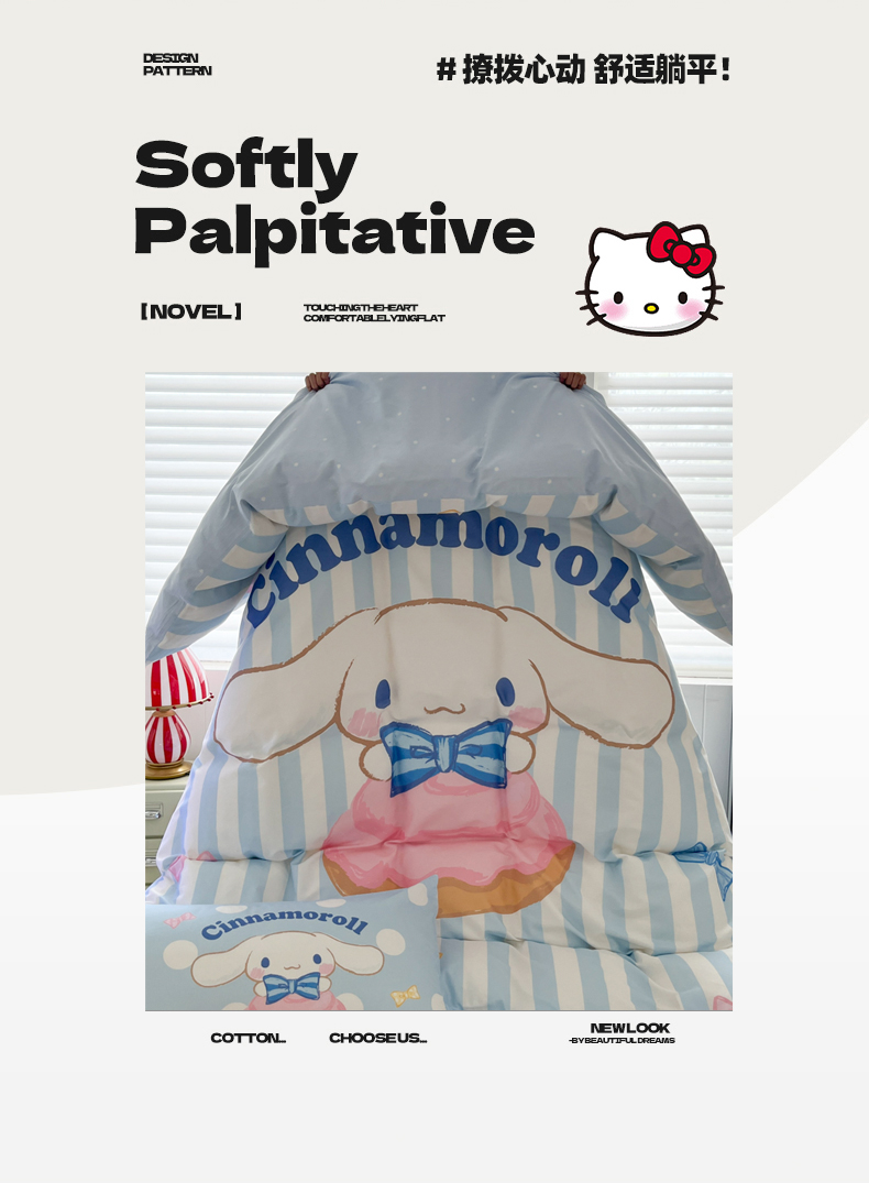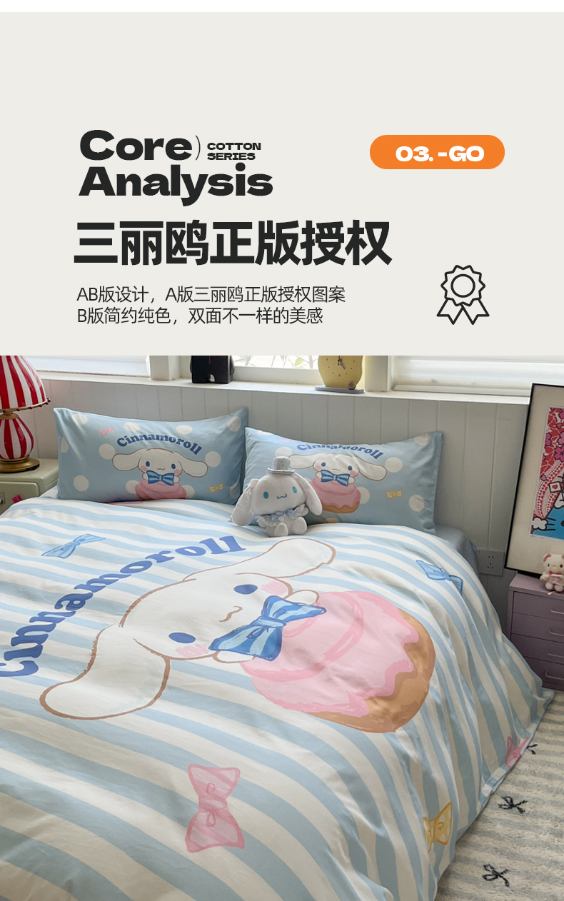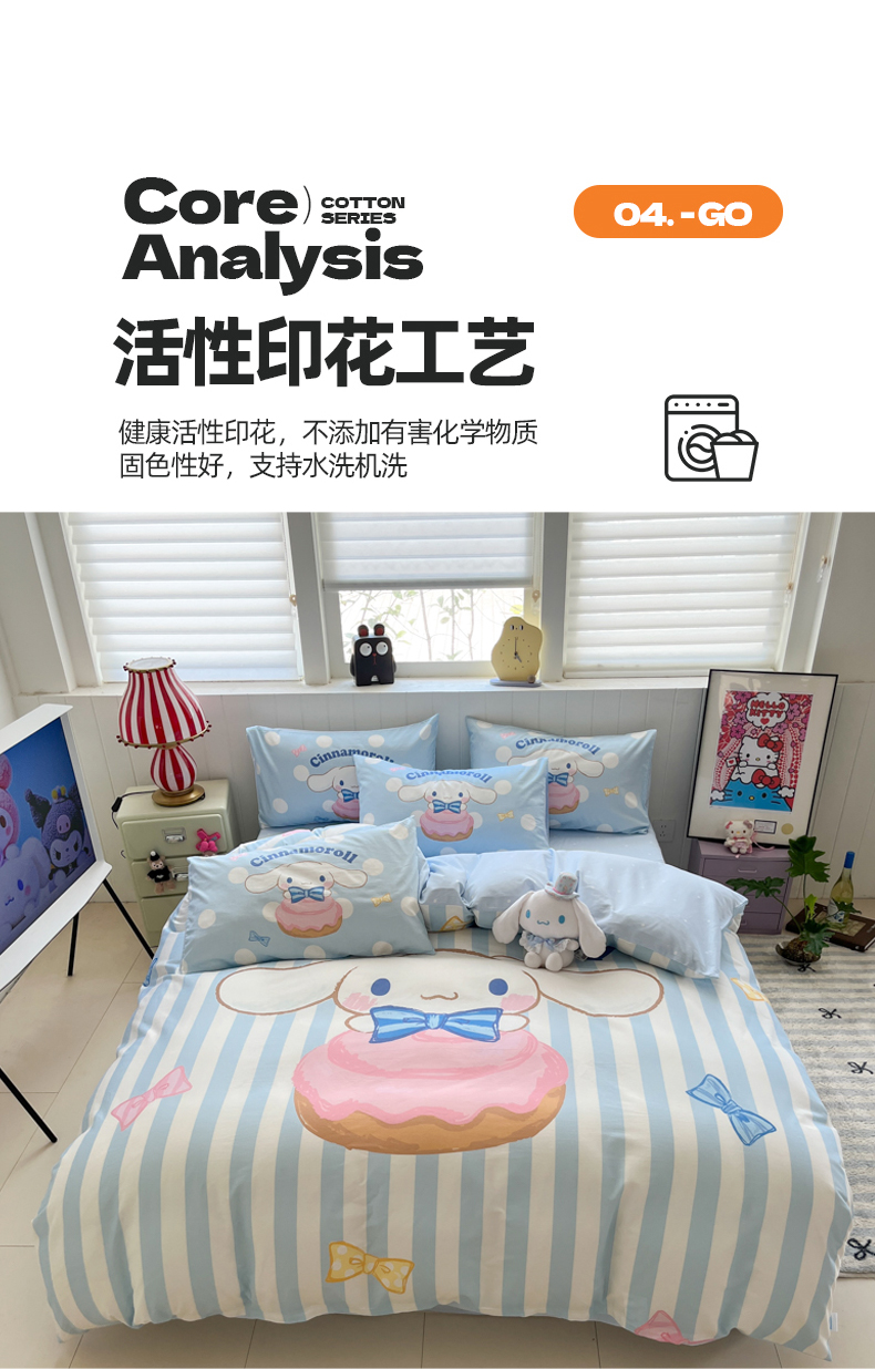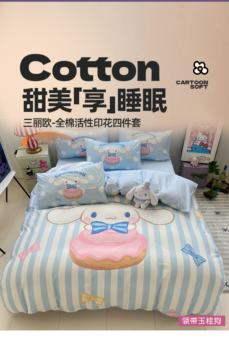 当前位置: 91家纺网 > 商品网购 > 床品套件 > 四件套 > 全棉普通四件套 > 金爱家 2025新款三丽鸥纯棉数码印花系列四件套 大阪-领带玉桂狗