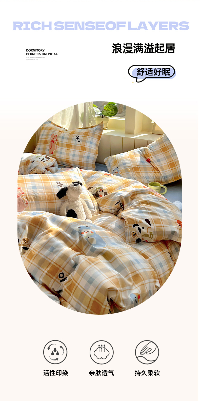 商品名称:宏源家纺 2025新款芦荟棉印花亲肤四件套 快乐玩伴