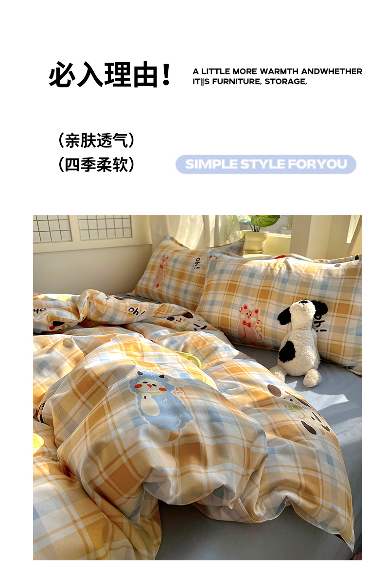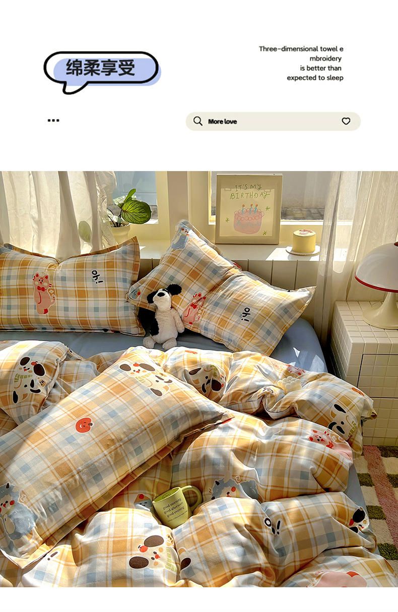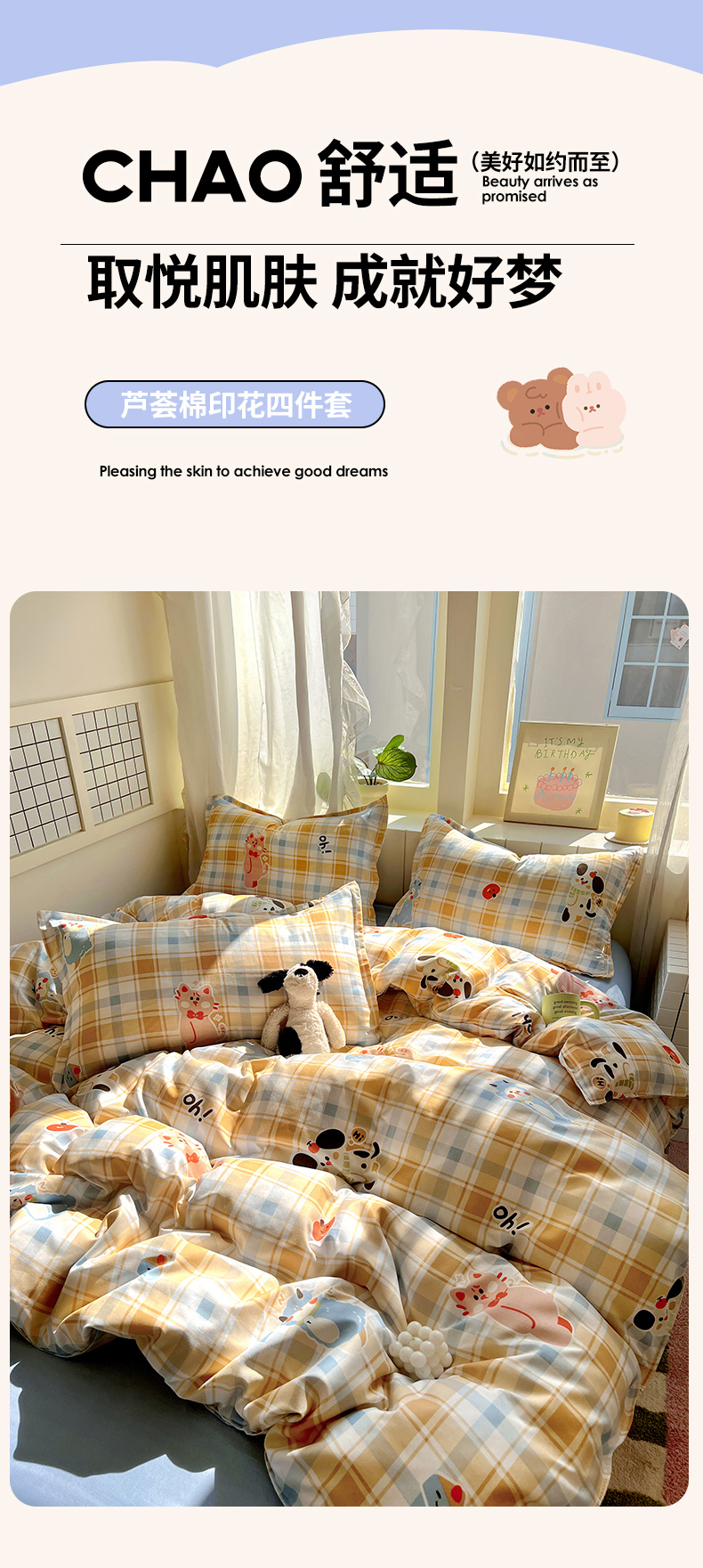 宏源家纺 2025新款芦荟棉印花亲肤四件套 快乐玩伴