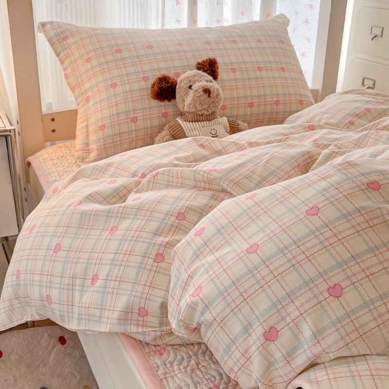 暖居2025新款学生季三件套棉加绒床盖双面被套学生宿舍专用 爱心满满