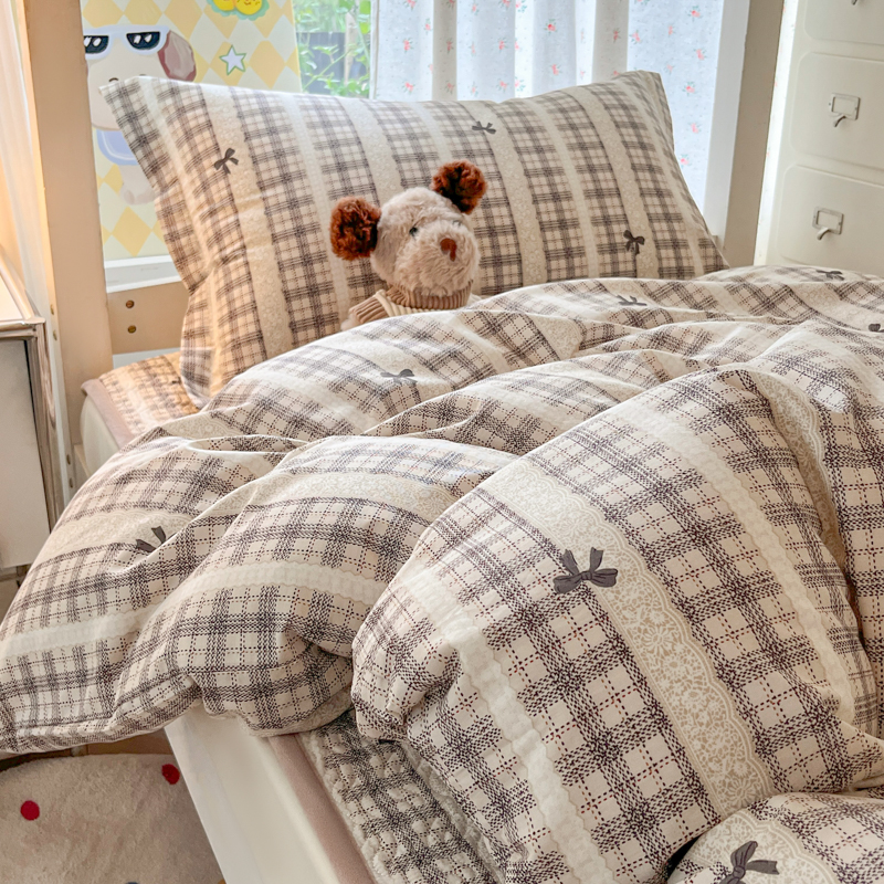 商品名称:暖居2025新款学生季三件套棉加绒床盖双面被套学生宿舍专用 巧克力