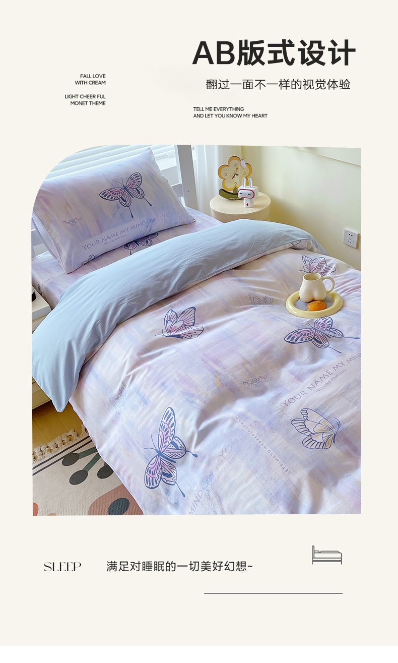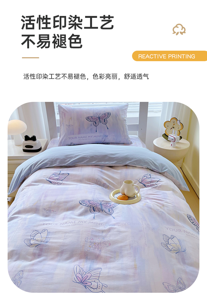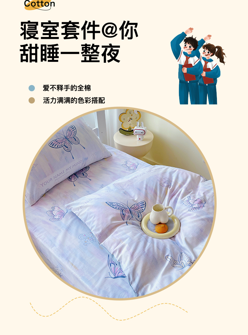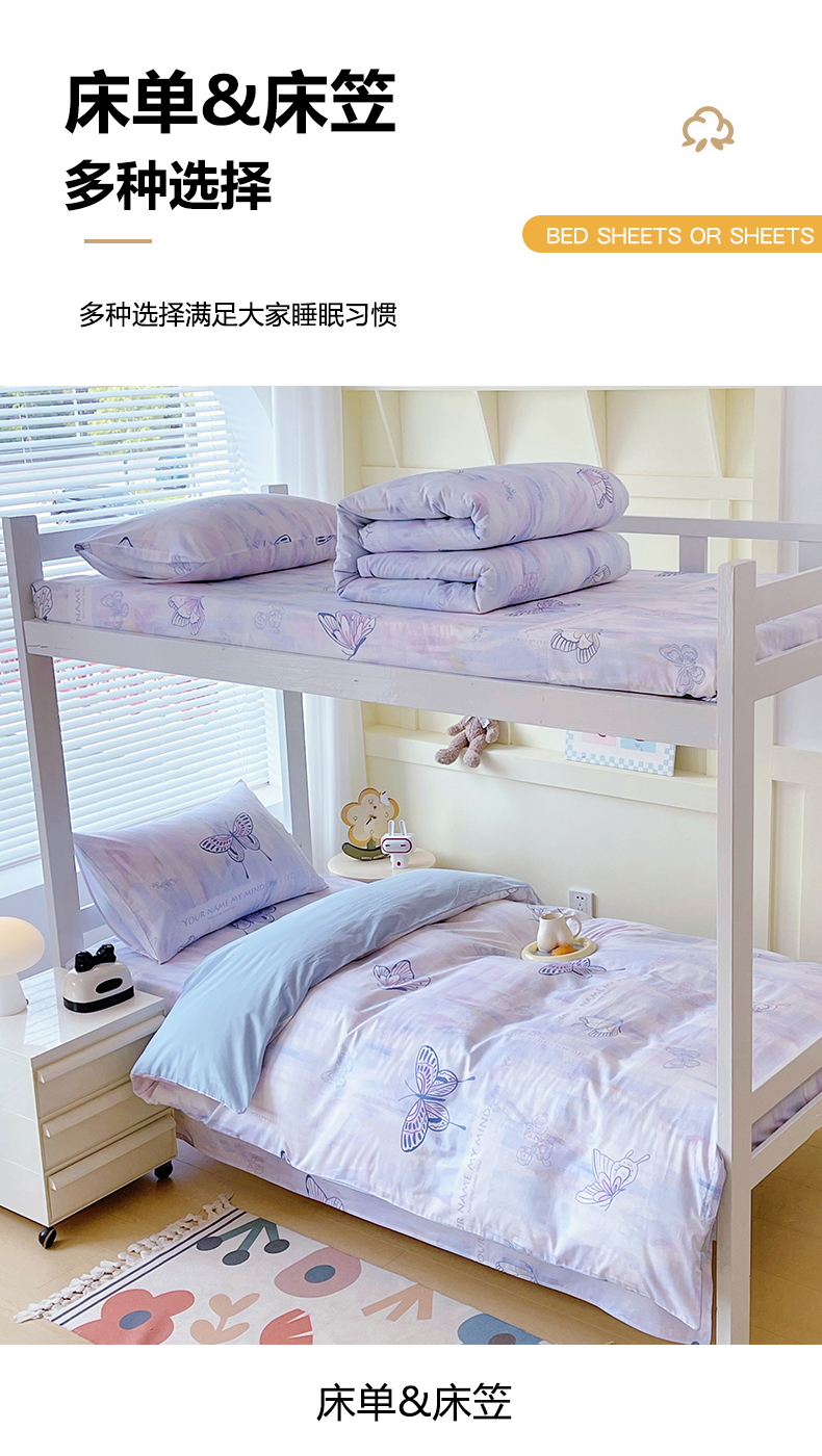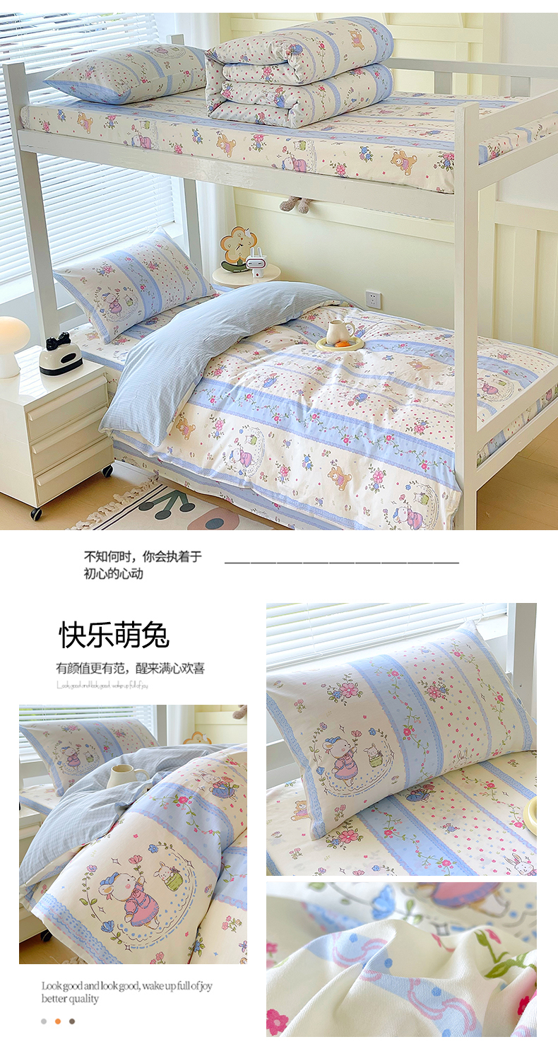 当前位置: 91家纺网 > 商品网购 > 床品套件 > 三件套 > 金鑫汇家纺 2025新款全棉学生宿舍三件套四件套系列 喵喵日记