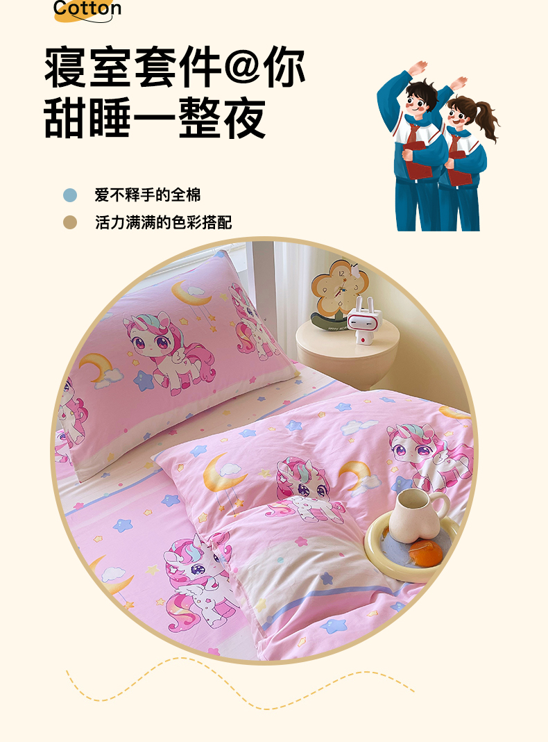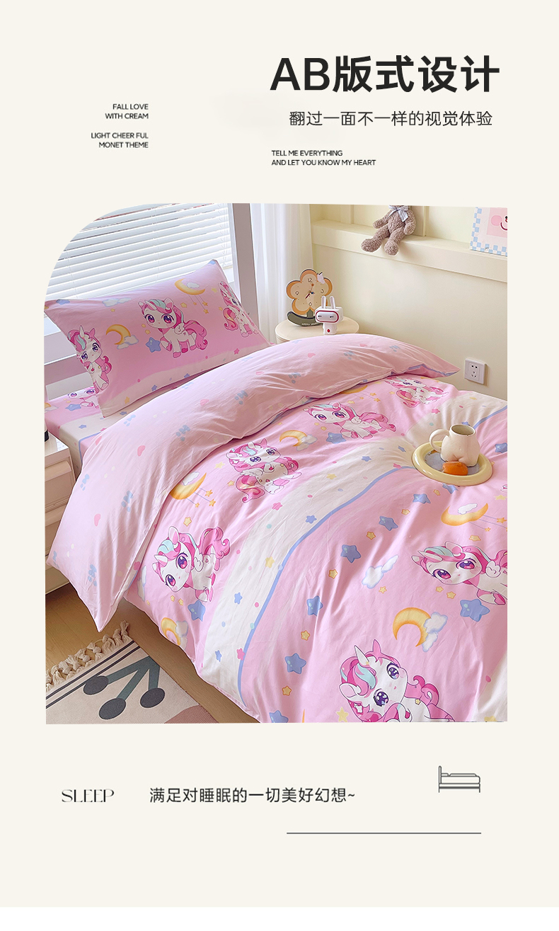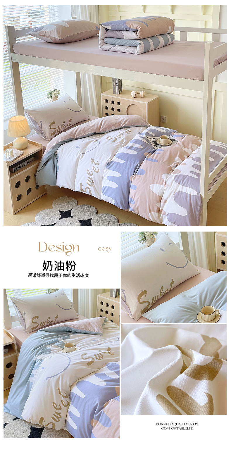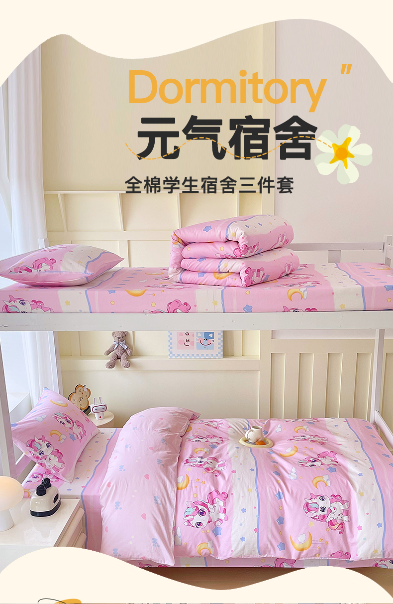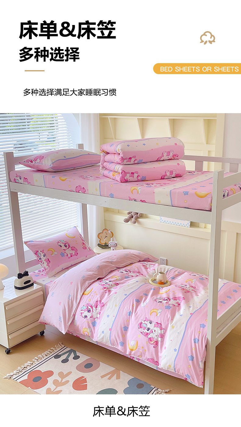 当前位置: 91家纺网 > 商品网购 > 床品套件 > 三件套 > 金鑫汇家纺 2025新款全棉学生宿舍三件套四件套系列 小马莉尔