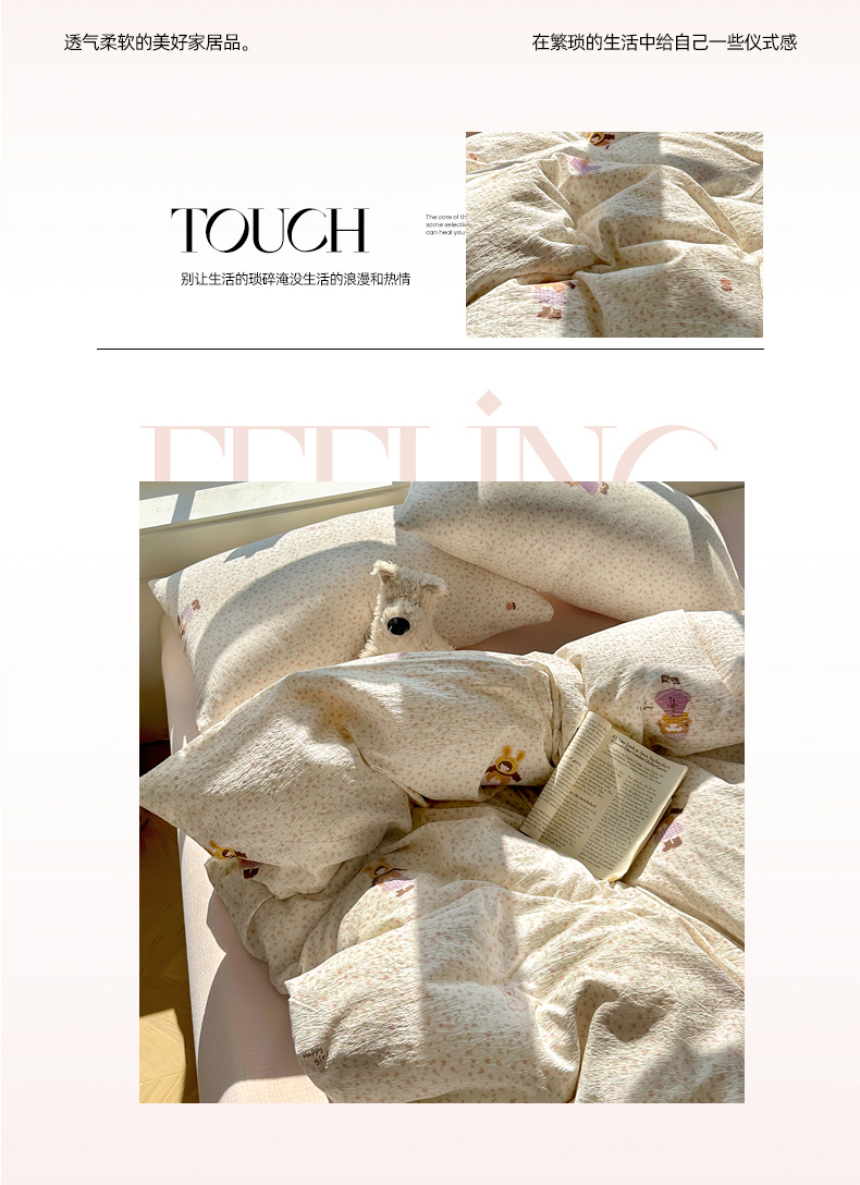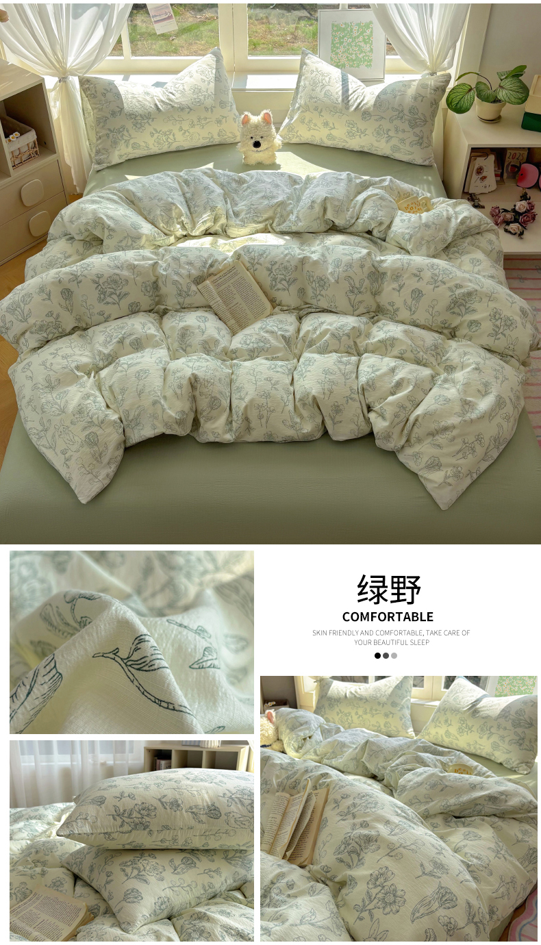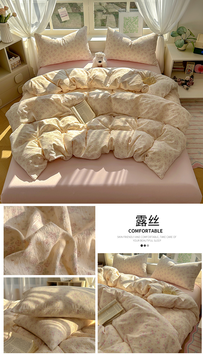 当前位置: 91家纺网 > 商品网购 > 床品套件 > 四件套 > 双层纱四件套 > 耀达家居 2025新款木棉A类有氧双层纱四件套小清新碎花床单宿舍三件套 安琪拉