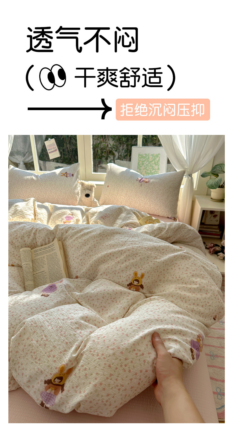 当前位置: 91家纺网 > 商品网购 > 床品套件 > 四件套 > 双层纱四件套 > 耀达家居 2025新款木棉A类有氧双层纱四件套小清新碎花床单宿舍三件套 微醺