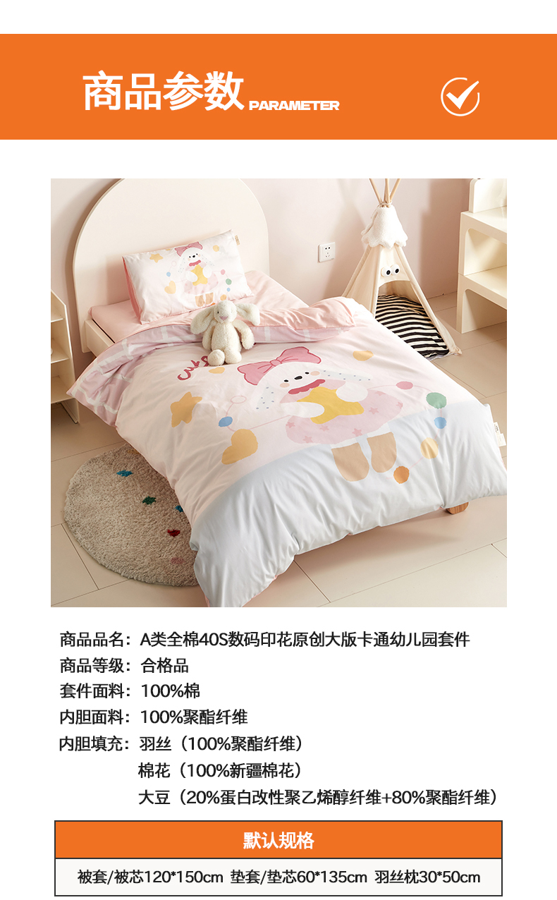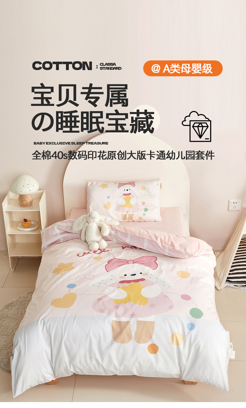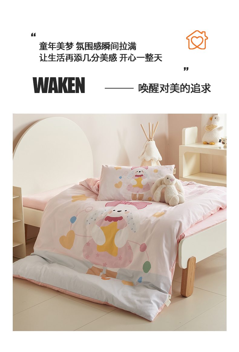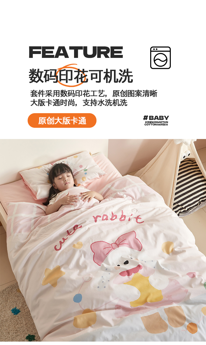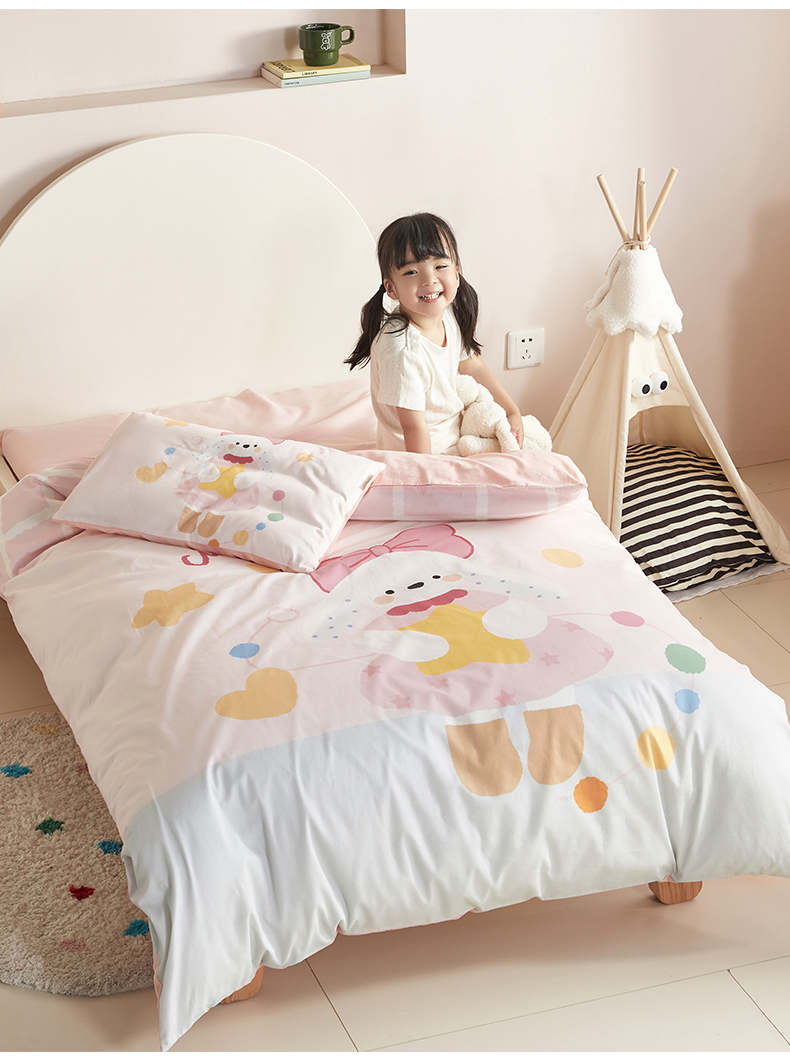 当前位置: 91家纺网 > 商品网购 > 床品套件 > 多件套 > 多件套 > 荷马之梦 2025新款学院系列—A类32s水洗棉贴布绣原创卡通拼接儿童幼儿园套件爱心兔