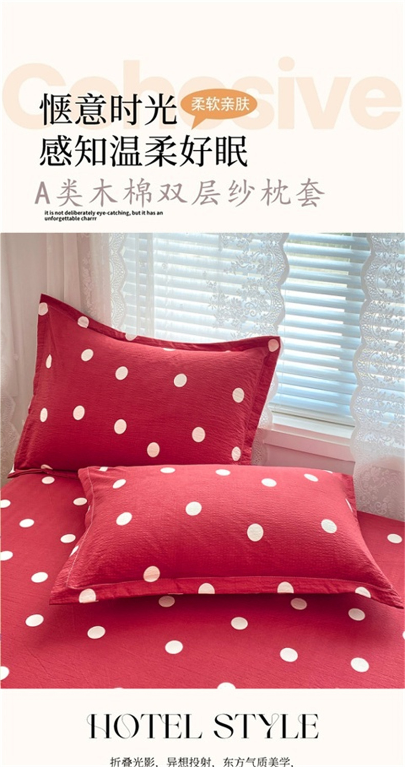 商品名称:圣比熊 2025新款双层纱枕套宿舍学生单只枕芯套枕头内胆套一对装-缤纷波点 波点-大红色