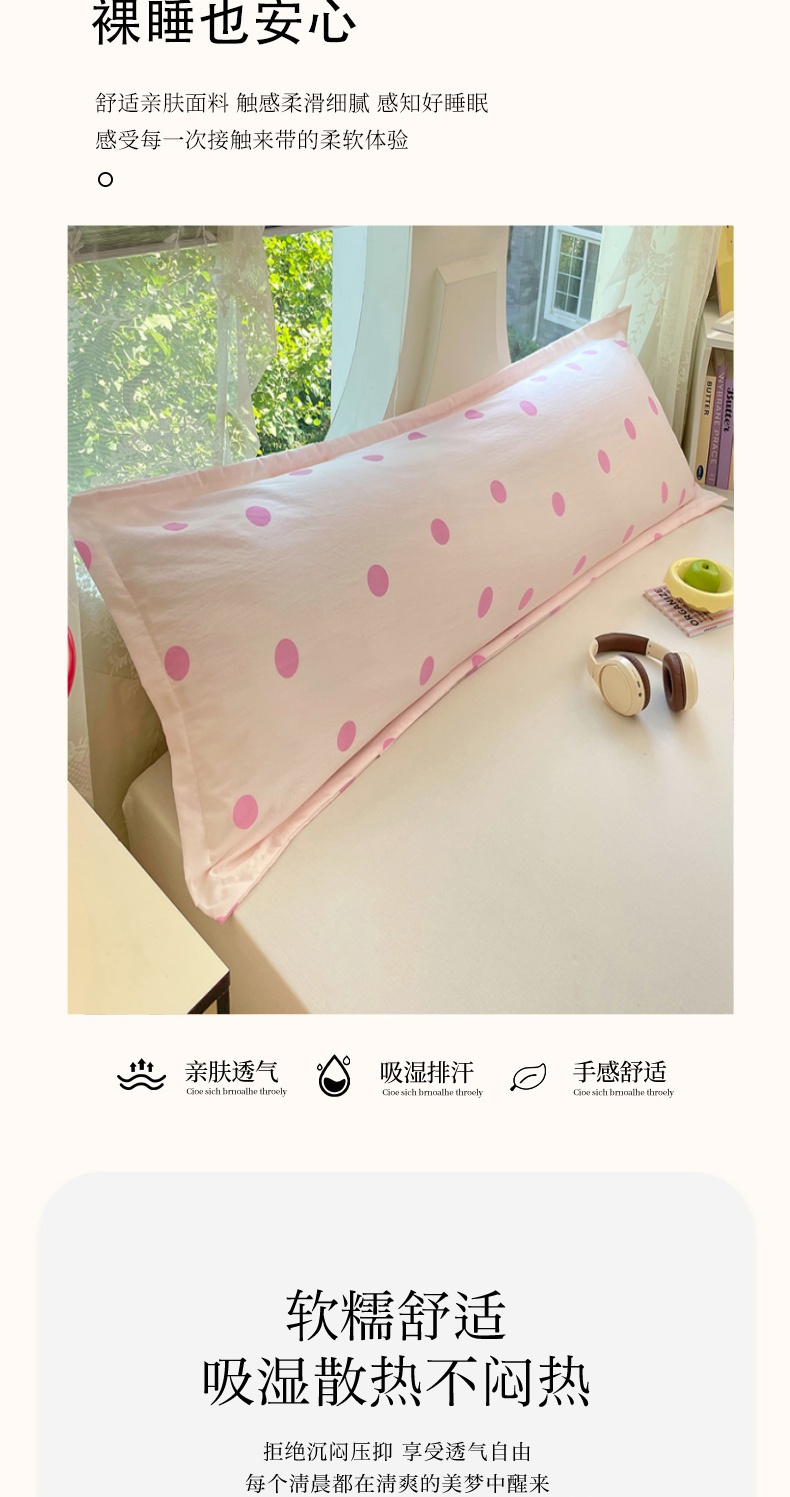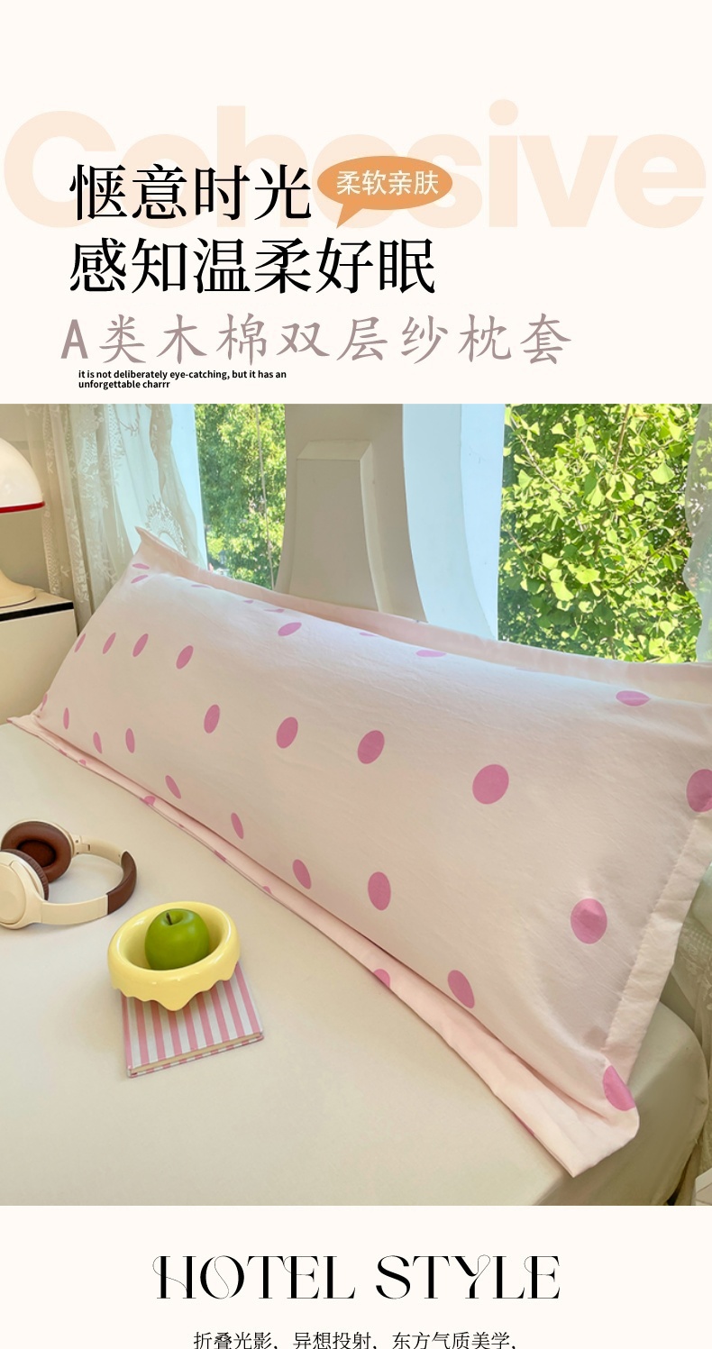 商品名称:圣比熊 2025新款双层纱双人枕套情侣学生长枕芯套枕头内胆套-缤纷波点 波点-樱花粉